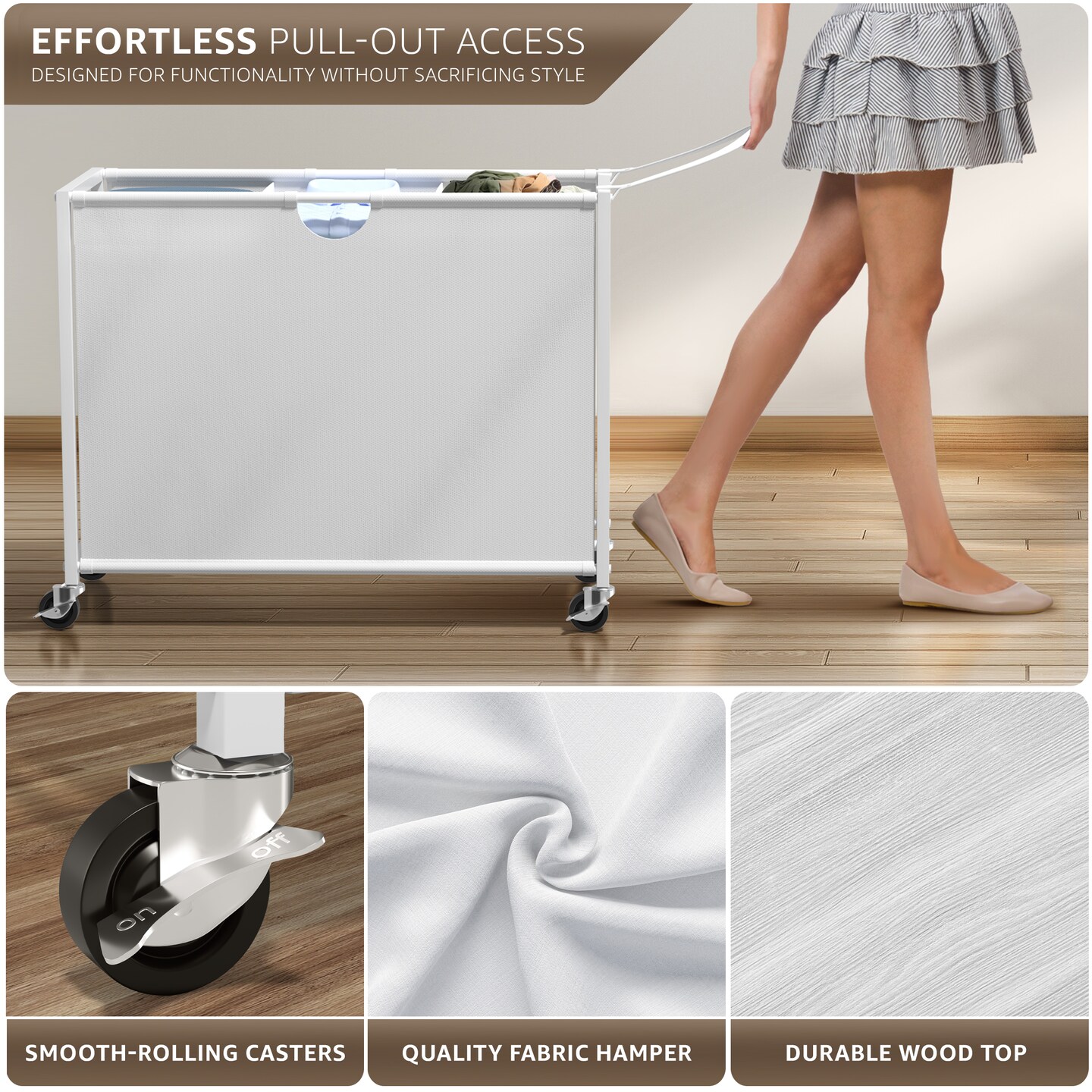 Sorbus Dresser with 3 Section Laundry Hamper and 2 Drawers for Laundry Room Organization