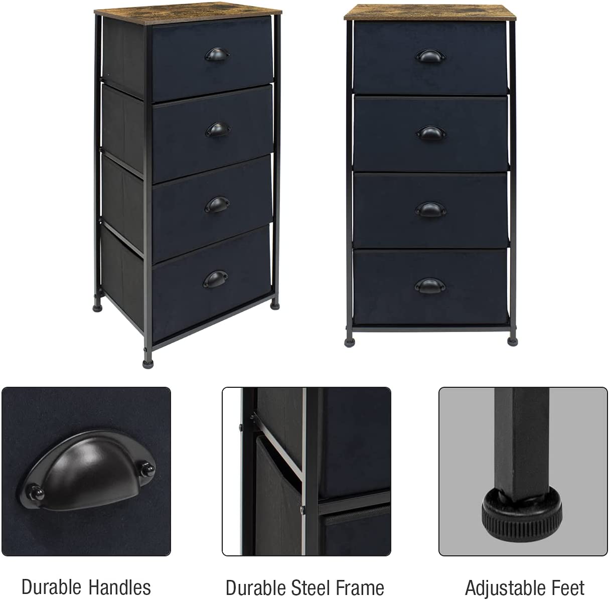 Sorbus Dresser with 4 Drawers - Bedside Furniture & Night Stand End Table Dresser with Steel Frame, Wood Top, Easy Pull Fabric Bins for Home, Bedroom Accessories, Office & Dorm