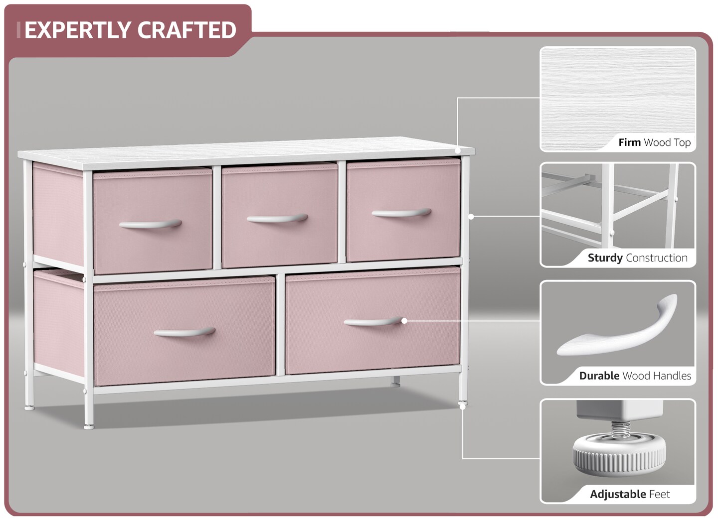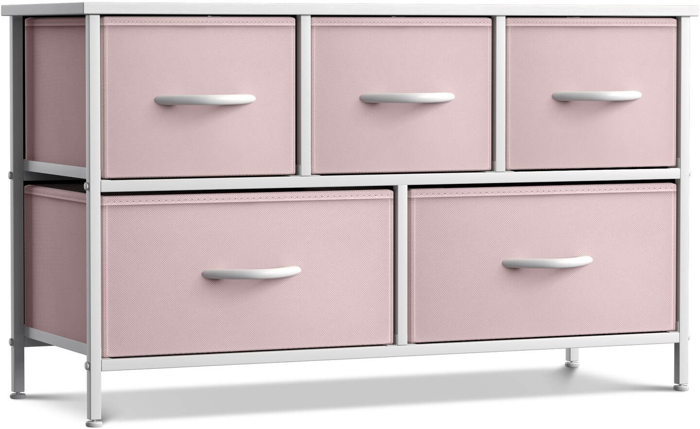 Sorbus Dresser with 5 Drawers - Storage Chest Organizer Unit with Steel Frame, Wood Top, Easy Pull Fabric Bins - Long Wide TV Stand for Bedroom Furniture, Hallway, Closet & Office Organization