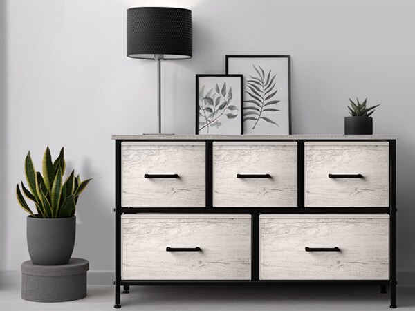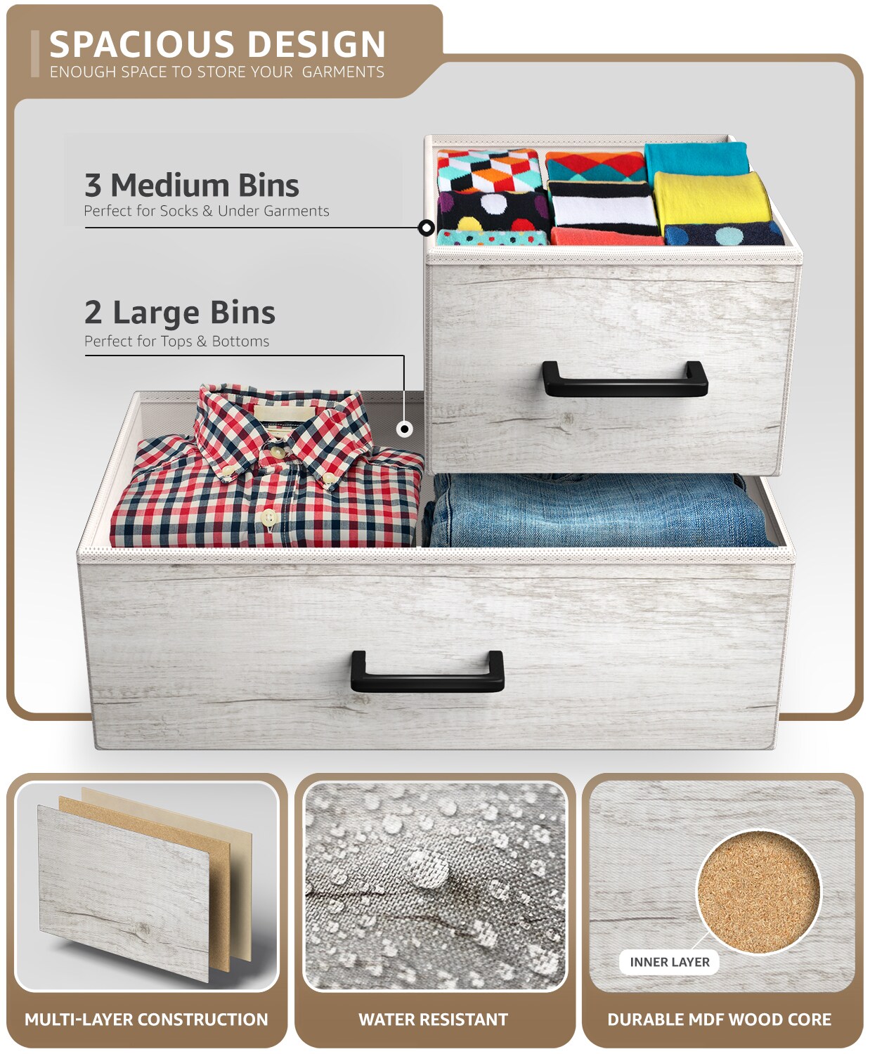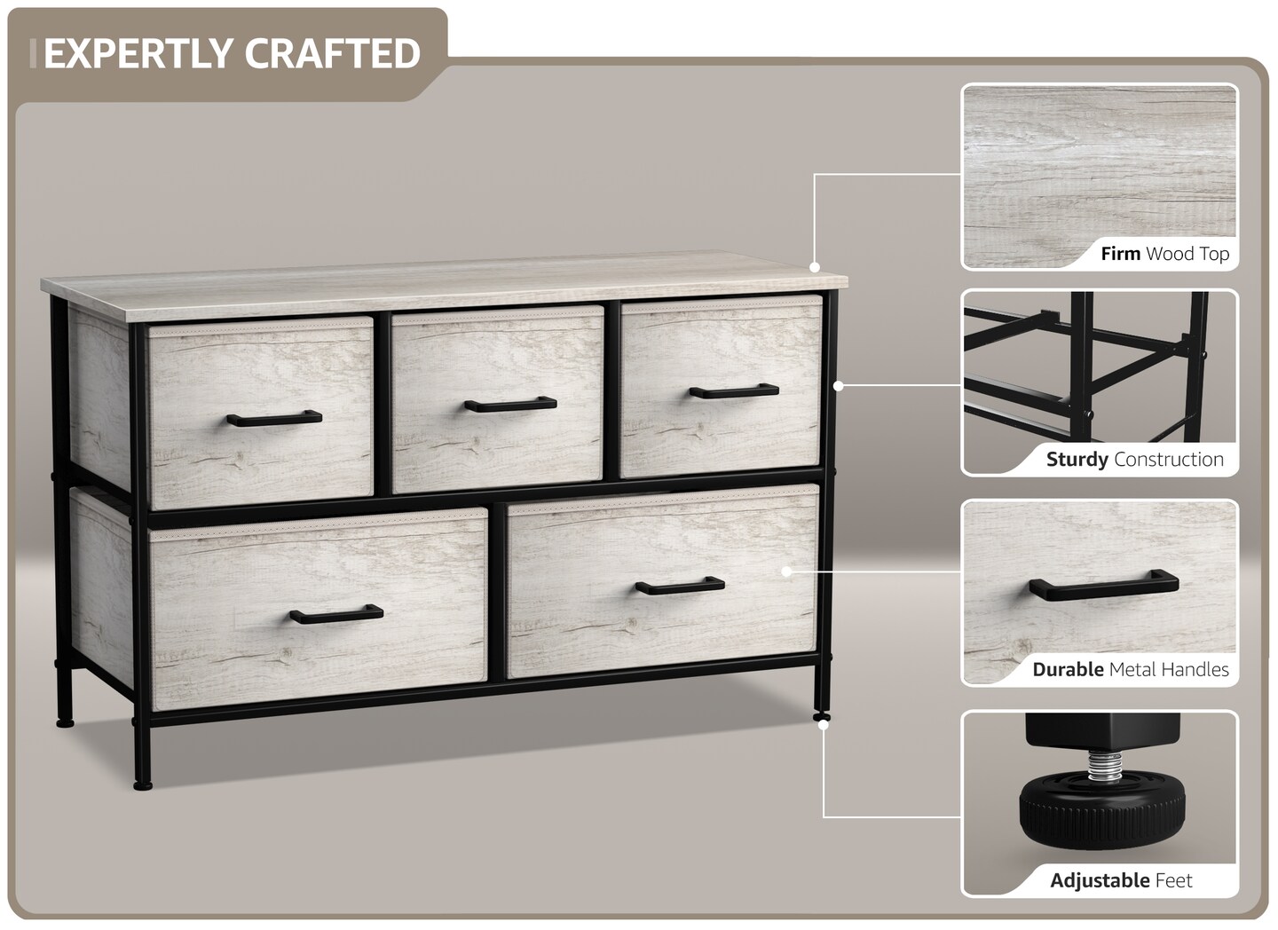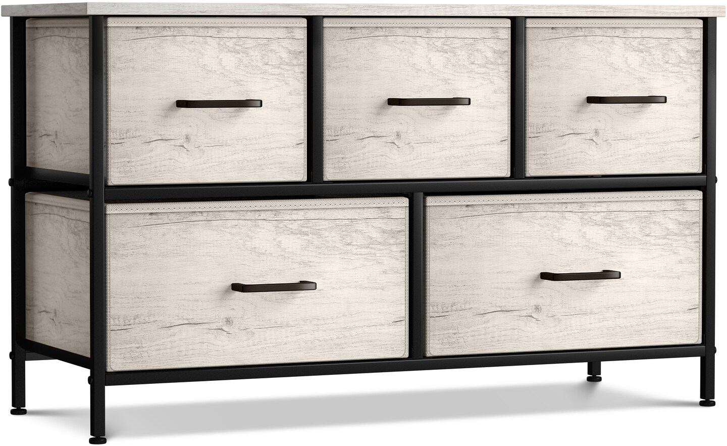 Sorbus Dresser with 5 Drawers - Storage Chest Organizer Unit with Steel Frame, Wood Top, Easy Pull Fabric Bins - Long Wide TV Stand for Bedroom Furniture, Hallway, Closet & Office Organization