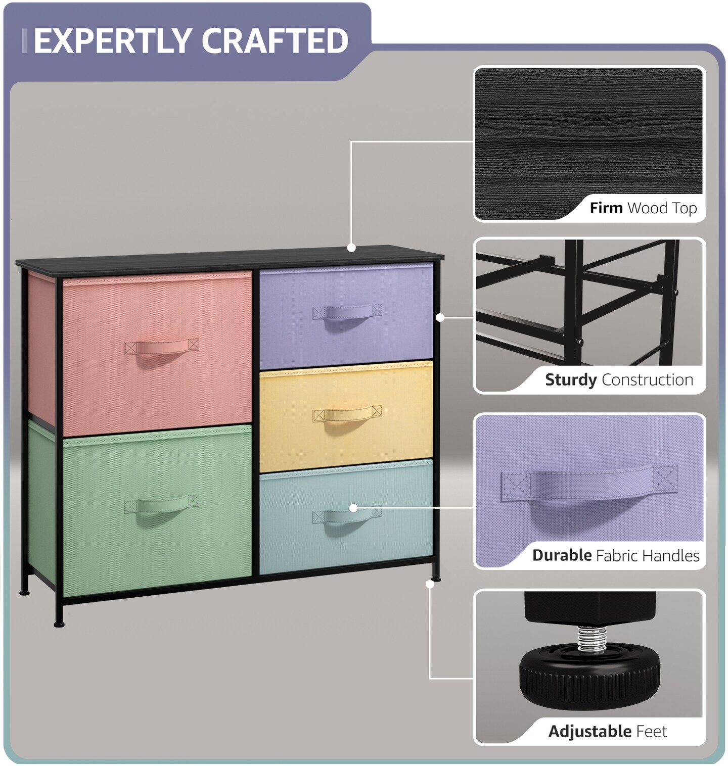 Sorbus Dresser with 5 Drawers - Storage Chest Organizer with Steel Frame, Wood Top, Handles, Fabric Bins