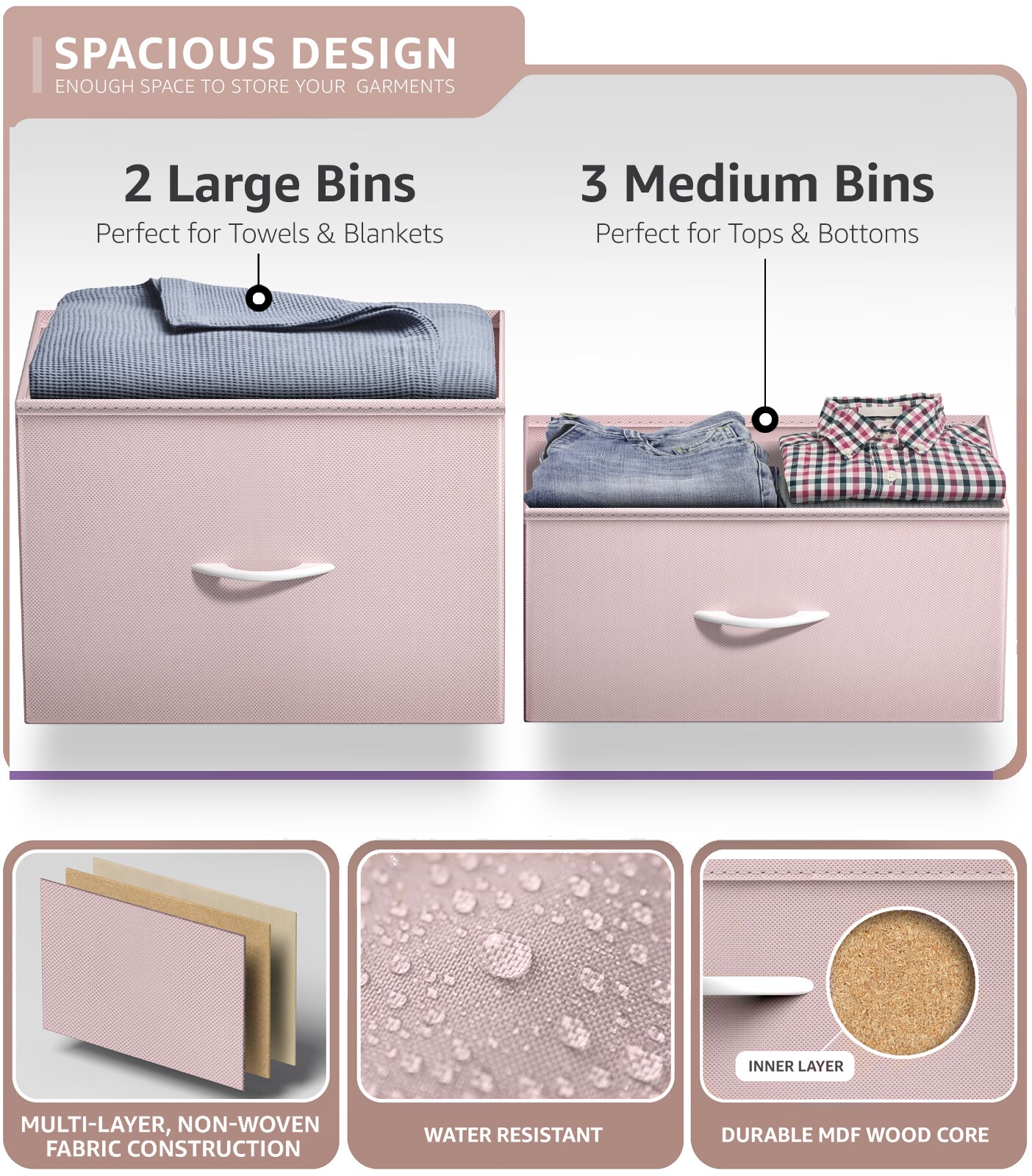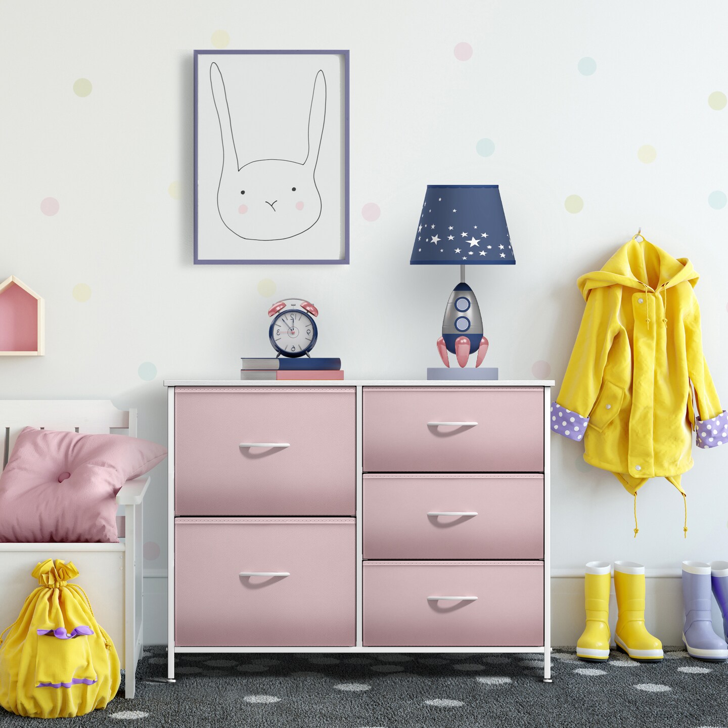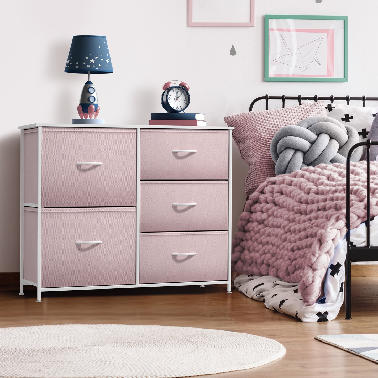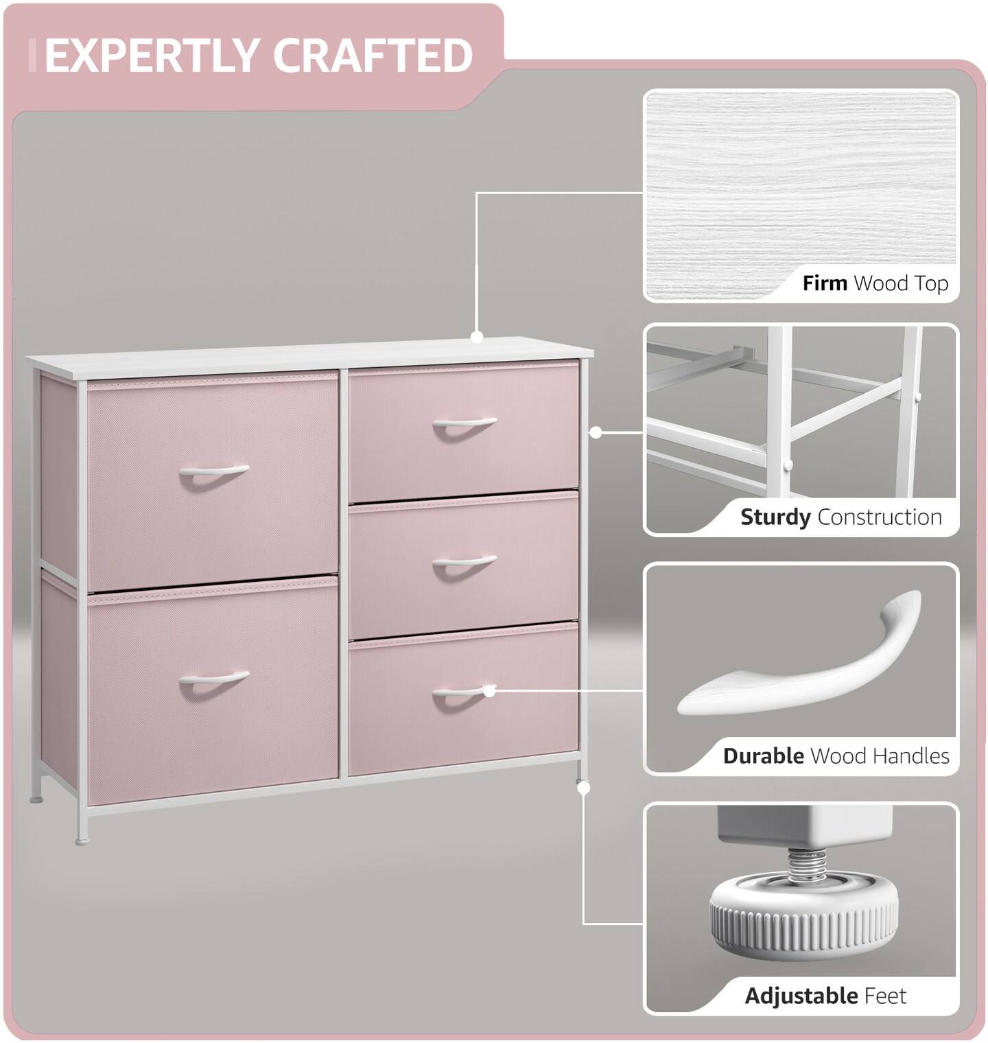 Sorbus Dresser with 5 Drawers - Storage Chest Organizer with Steel Frame, Wood Top, Handles, Fabric Bins