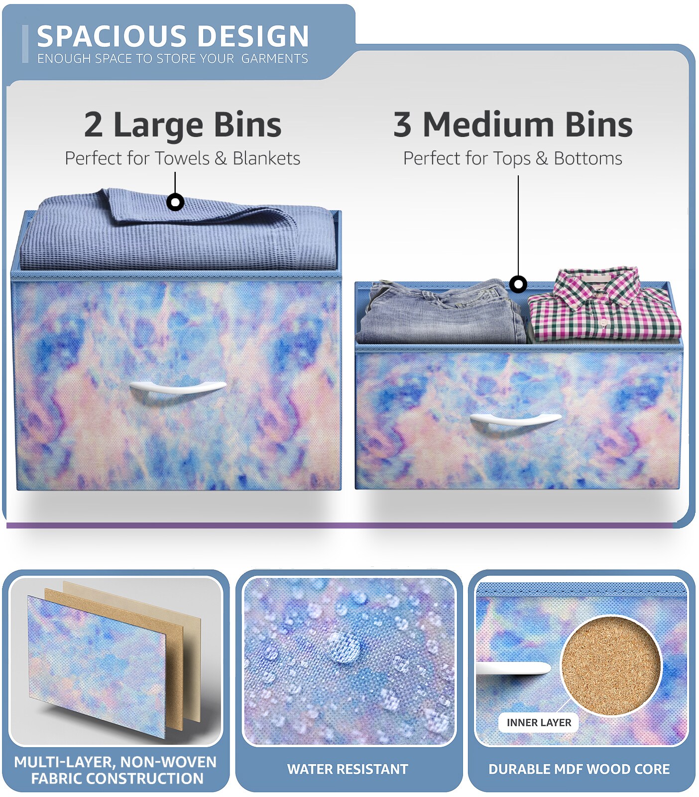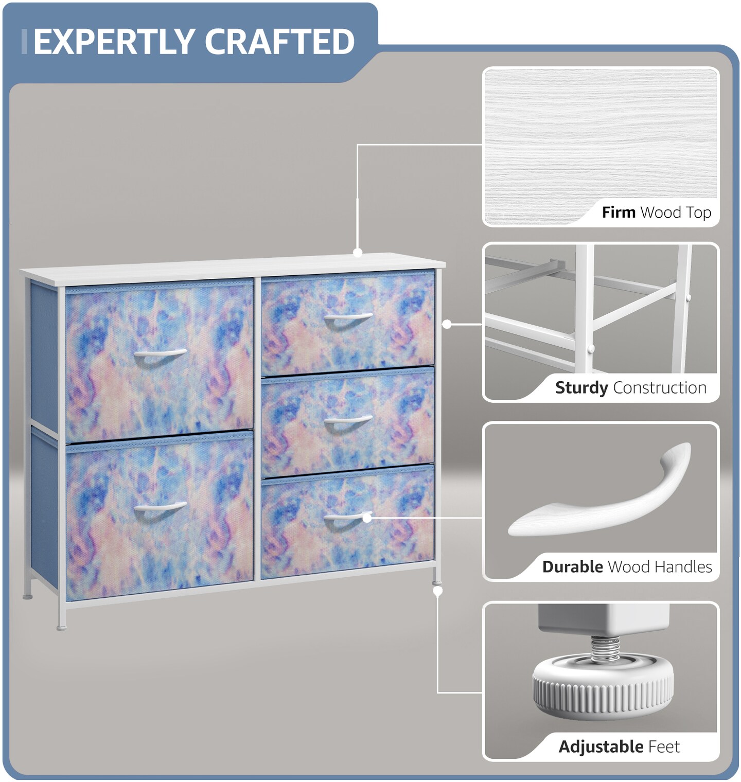 Sorbus Dresser with 5 Drawers - Storage Chest Organizer with Steel Frame, Wood Top, Handles, Fabric Bins