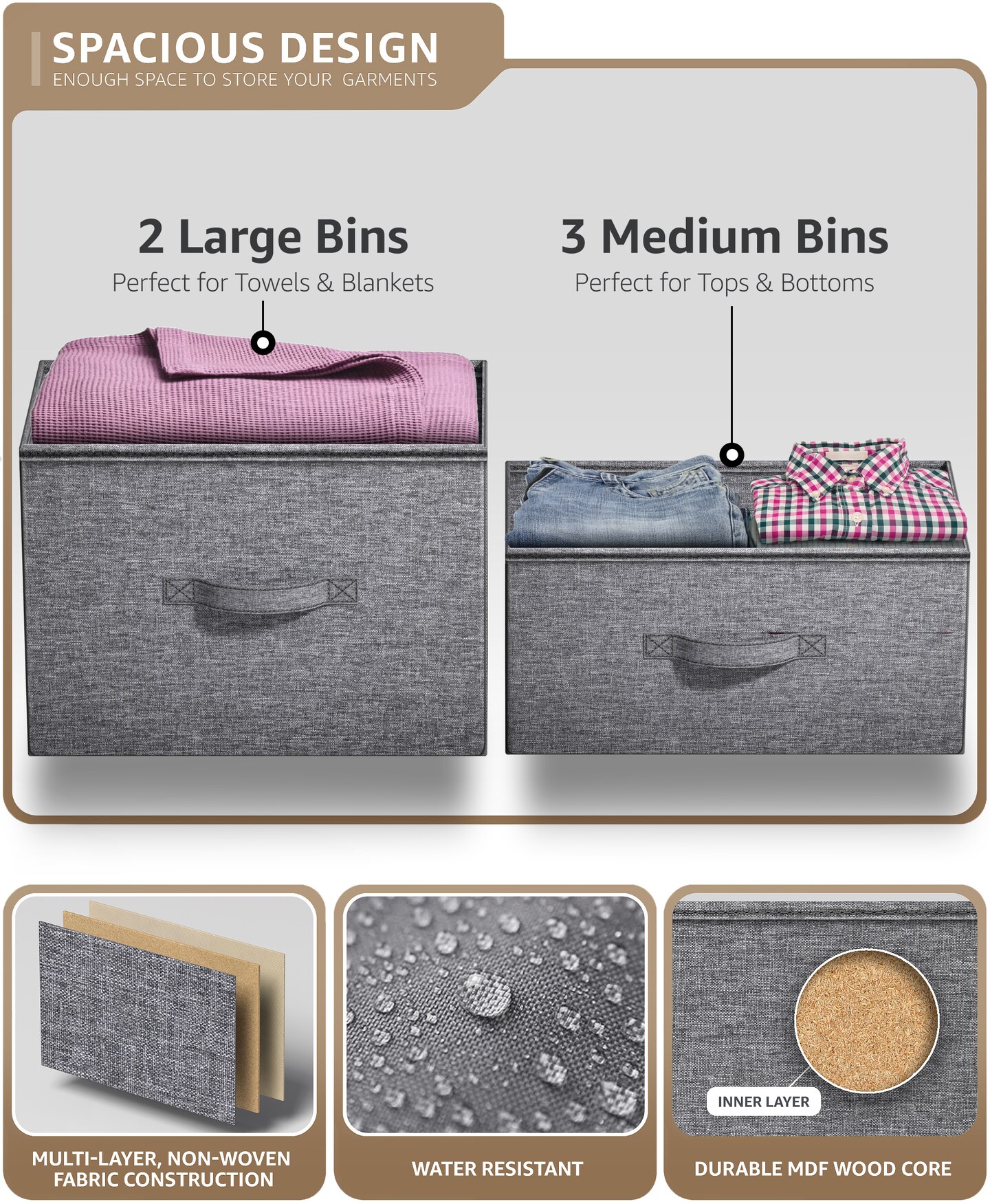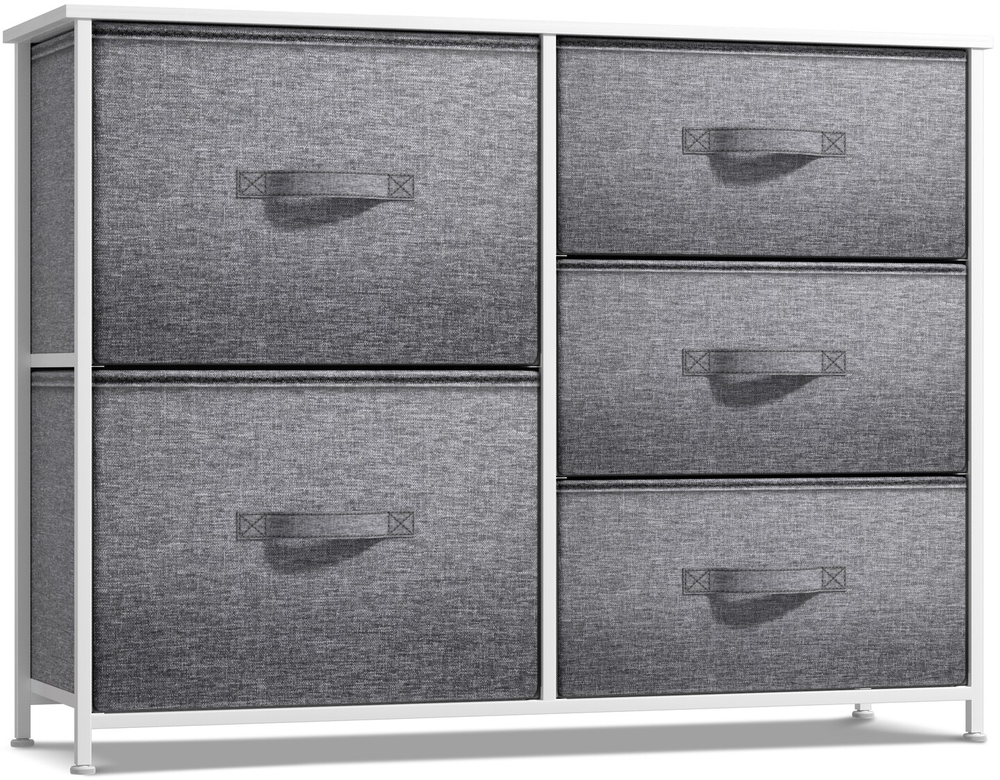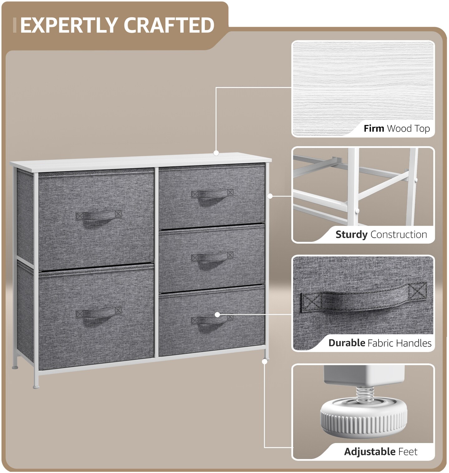 Sorbus Dresser with 5 Drawers - Storage Chest Organizer with Steel Frame, Wood Top, Handles, Fabric Bins