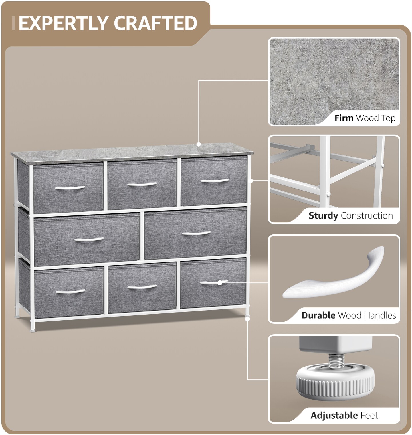 Sorbus Dresser with 8 Drawers - Chest Organizer Unit with Steel Frame Wood Top & Handle Easy Pull Fabric Bins for Clothes - Wide Storage Furniture for Bedroom, Hallway, Living Room, Nursery & Closet