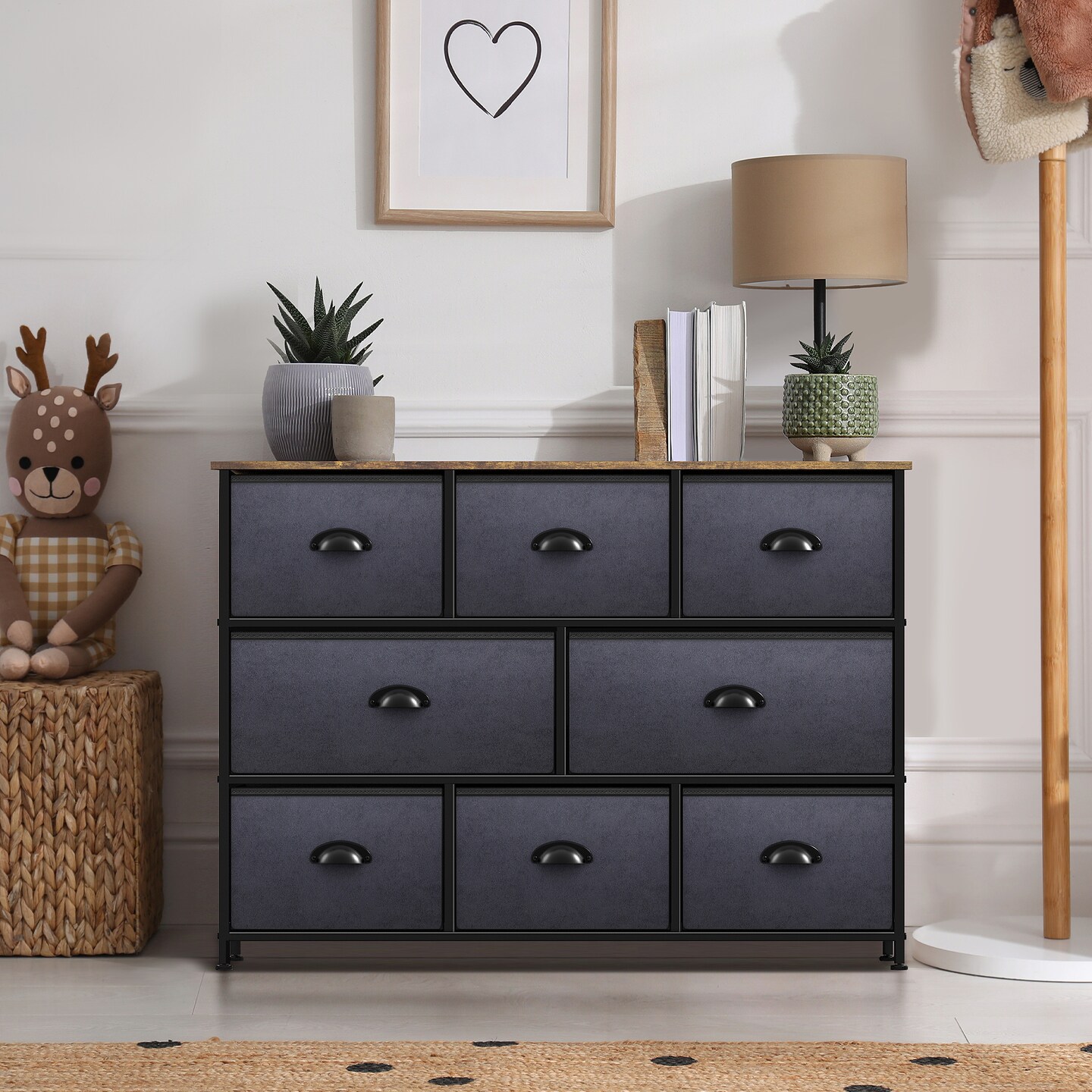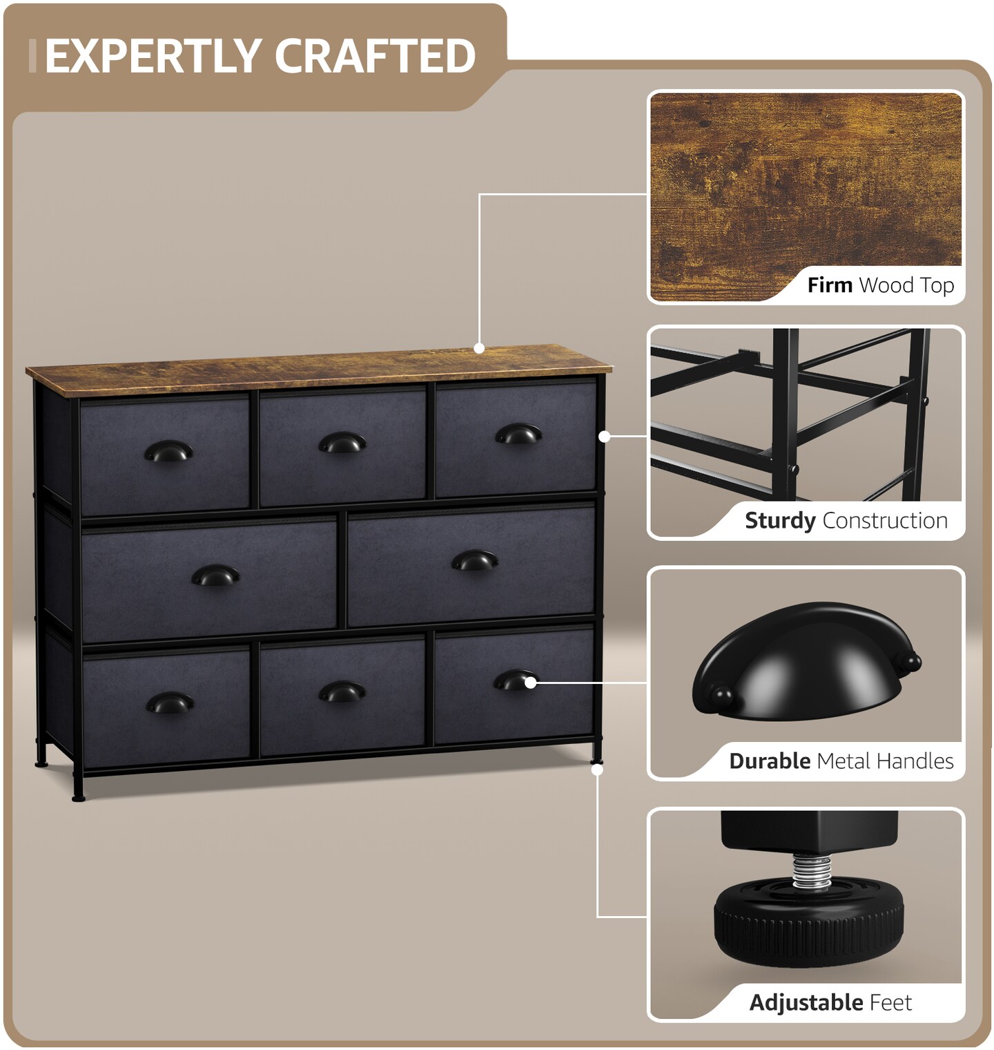 Sorbus Dresser with 8 Drawers - Chest Organizer Unit with Steel Frame Wood Top & Handle Easy Pull Fabric Bins for Clothes - Wide Storage Furniture for Bedroom, Hallway, Living Room, Nursery & Closet