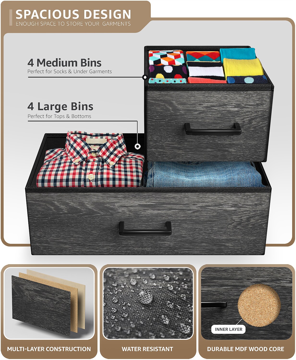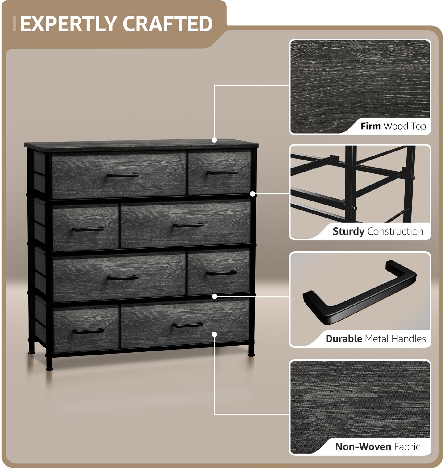Sorbus Dresser with 8 Drawers - Storage Chest Organizer with Steel Frame, Wood Top, Handles, Fabric Bins