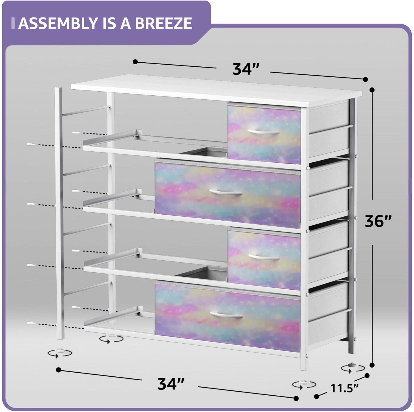 Sorbus Dresser with 8 Drawers - Storage Chest Organizer with Steel Frame, Wood Top, Handles, Fabric Bins