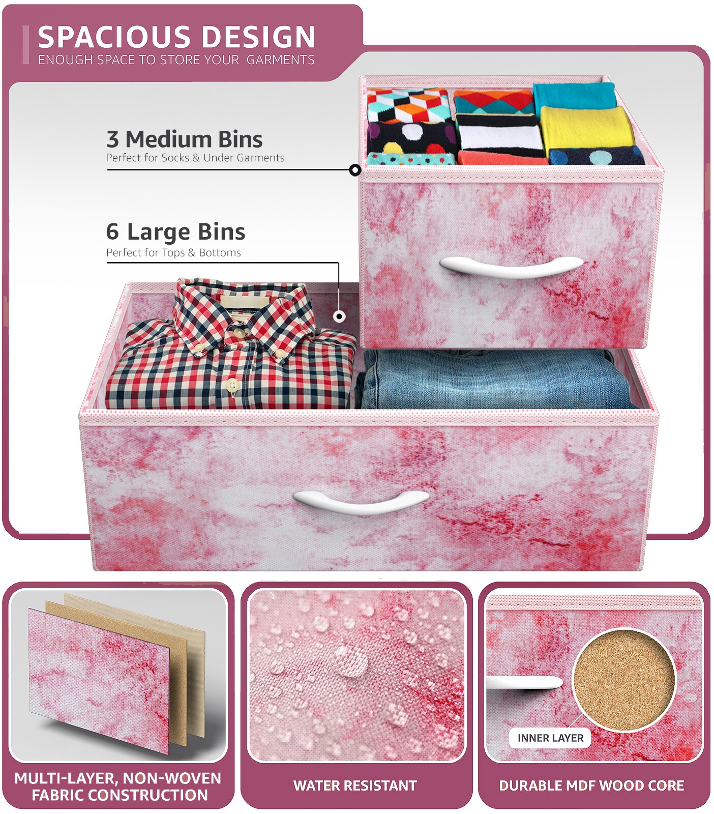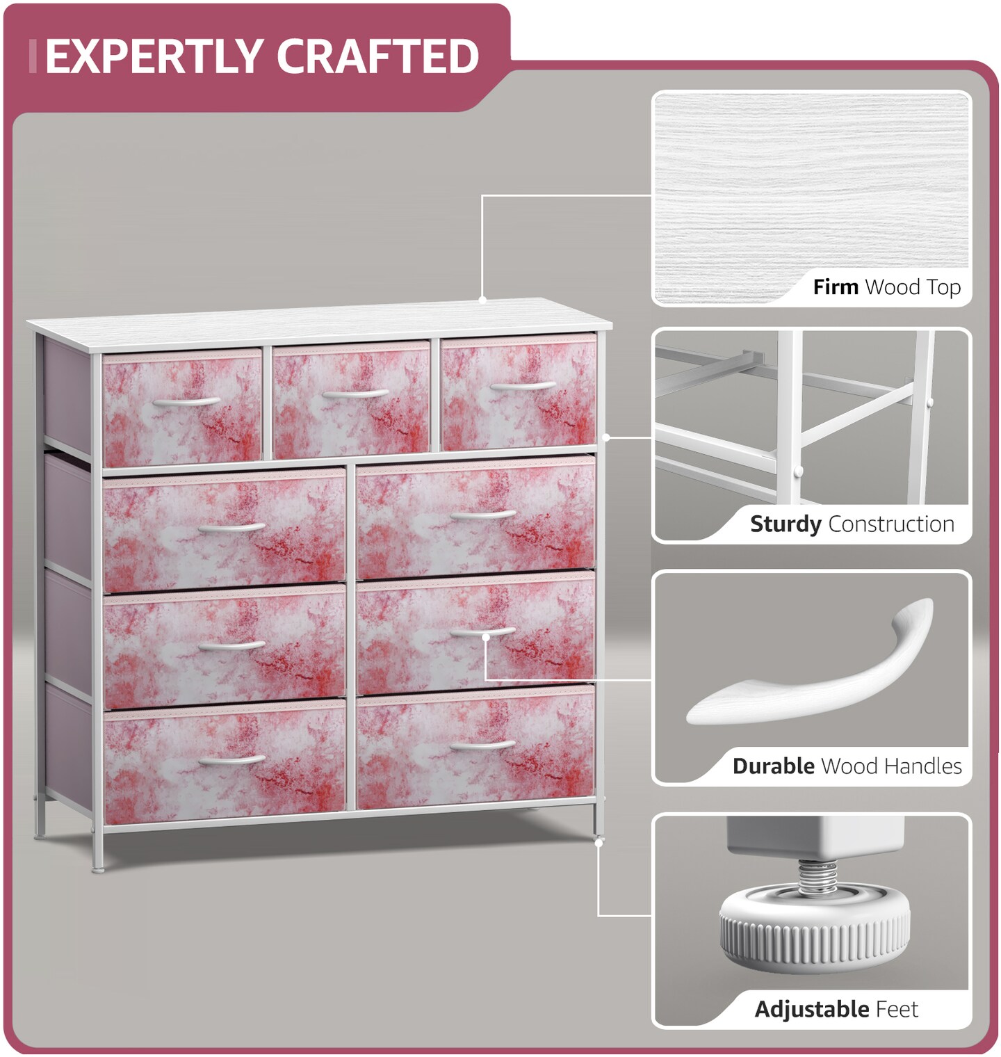 Sorbus Dresser with 9 Drawers - Furniture Storage Chest Tower Unit for Bedroom, Closet, etc - Steel Frame, Wood Top, Fabric Bins