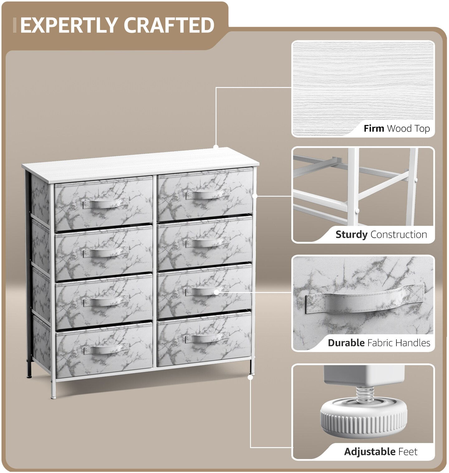 Sorbus Extra Wide Dresser Organizer With 8 Drawers - Large Storage Furniture for Bedroom, Hallway, Living Room, Nursery & Closet