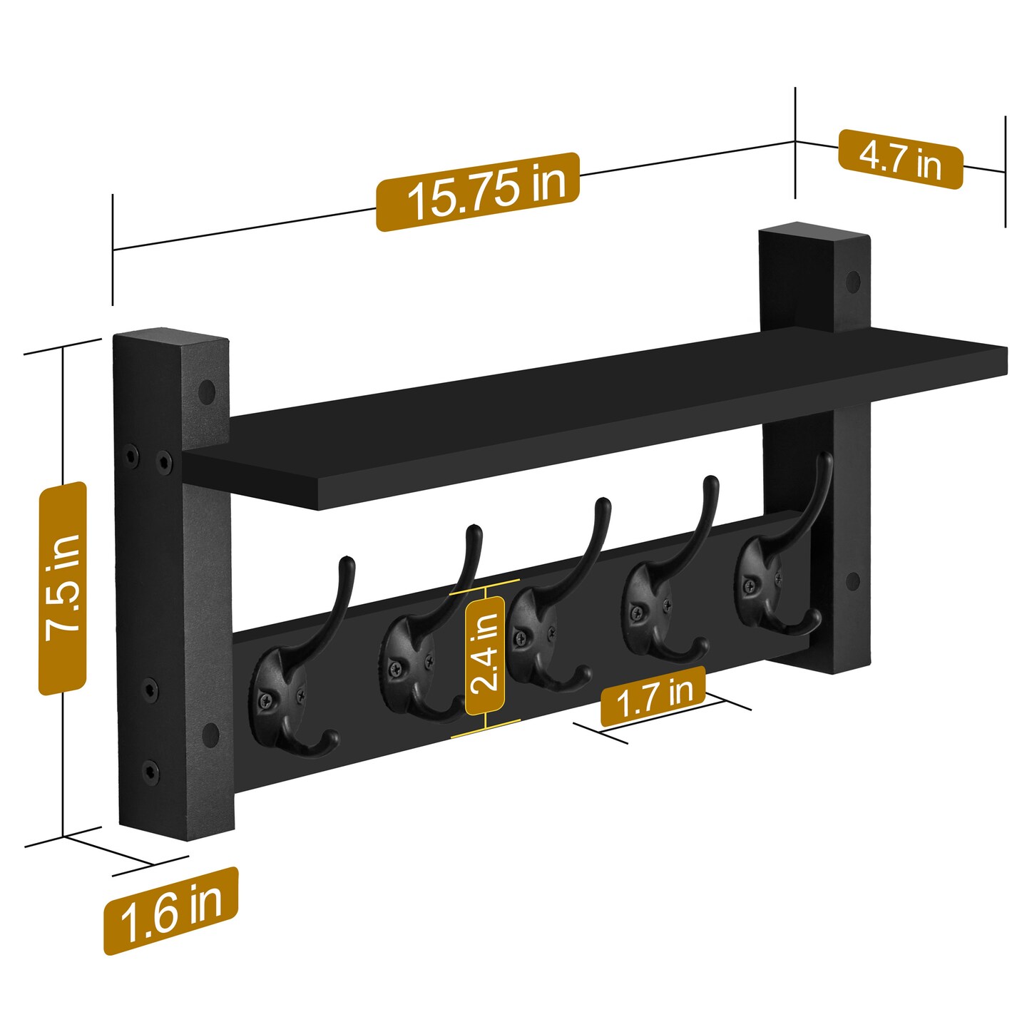Sorbus Floating Wall Shelf with Hooks for Entryway, Bathroom, Bedroom, Kitchen, or Mudroom