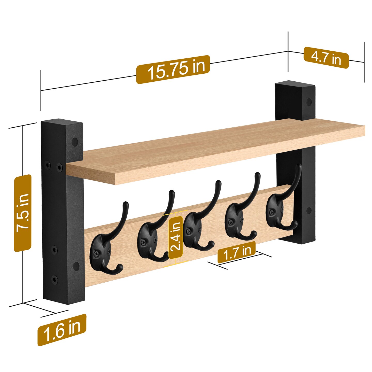 Sorbus Floating Wall Shelf with Hooks for Entryway, Bathroom, Bedroom, Kitchen, or Mudroom