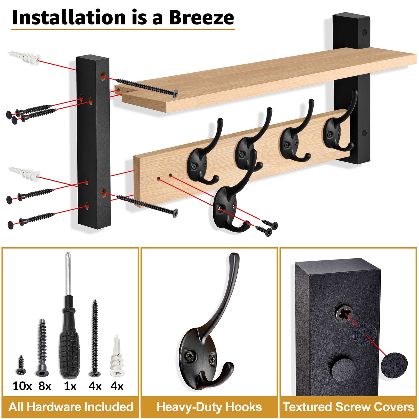 Sorbus Floating Wall Shelf with Hooks for Entryway, Bathroom, Bedroom, Kitchen, or Mudroom