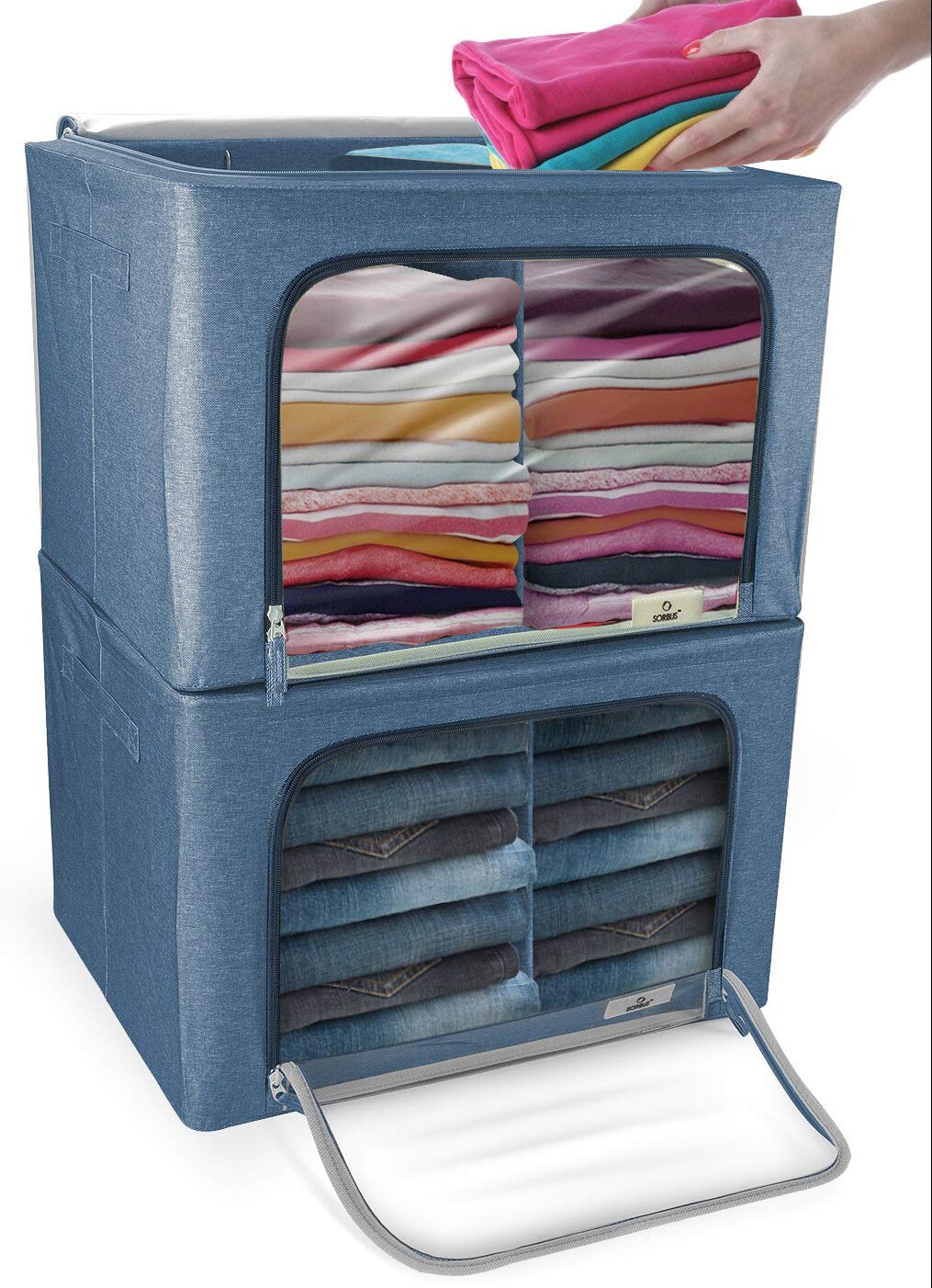 Sorbus Foldable Storage Bin Set with Divided Interior, Large Clear Window & Carry Handles - (Two Sections)
