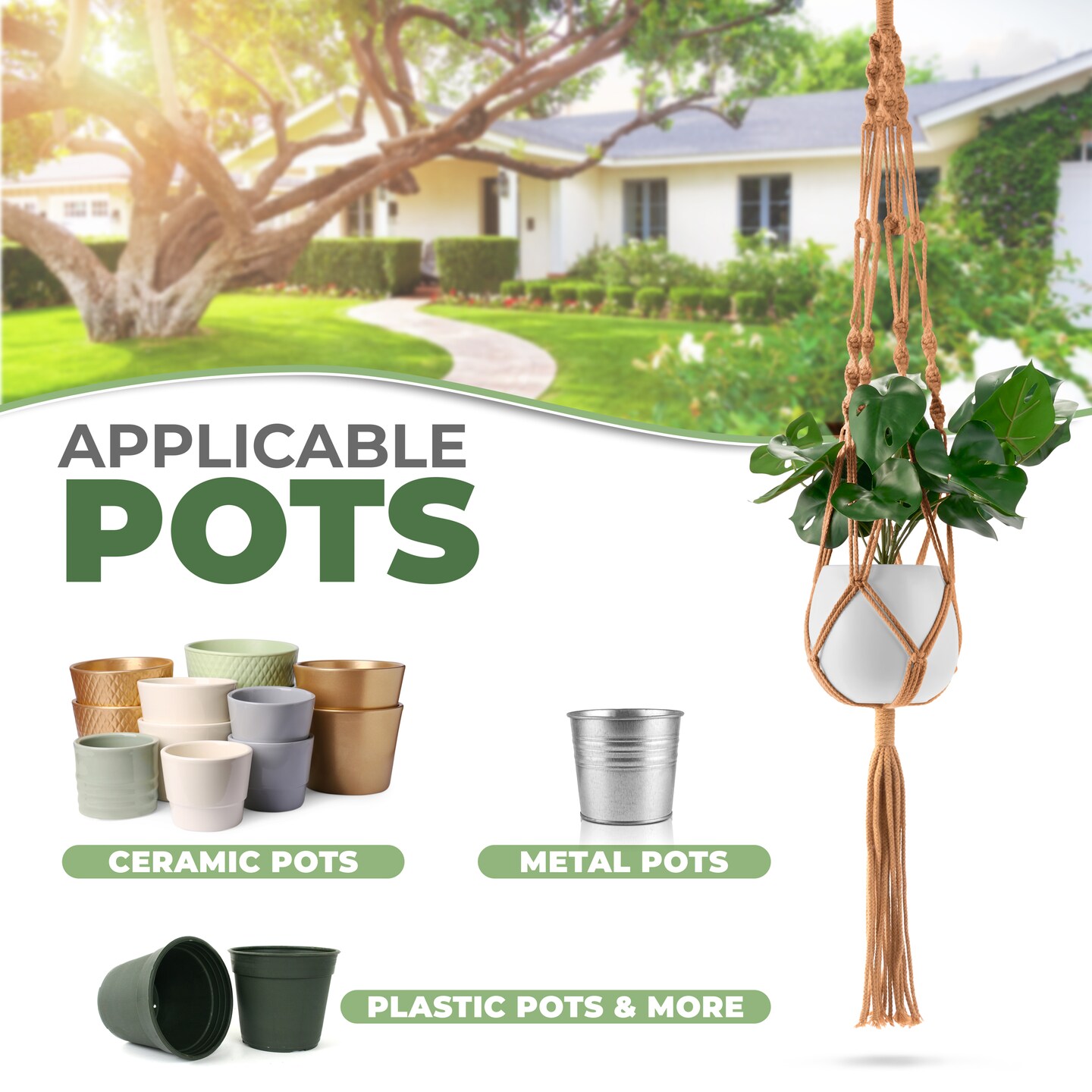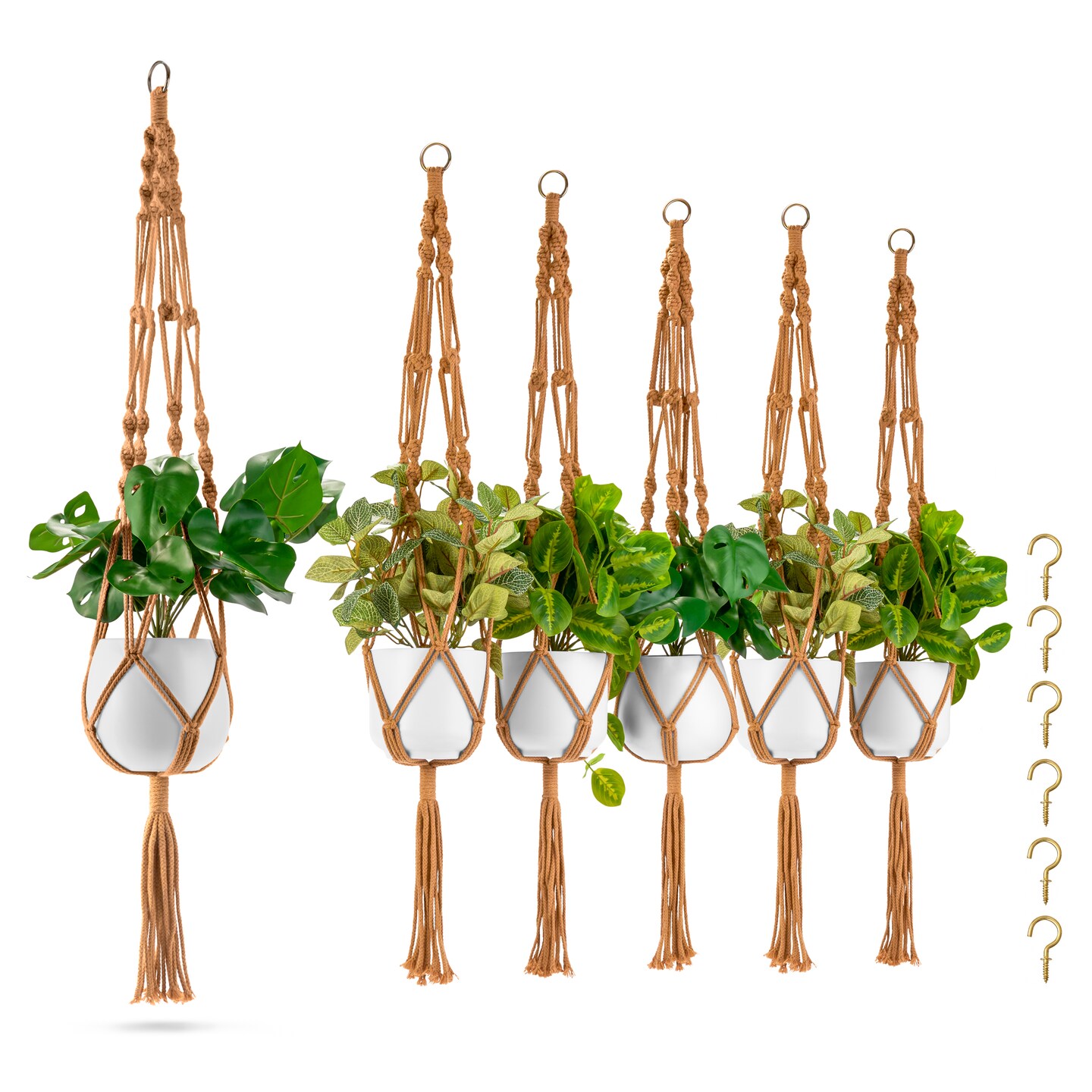 Sorbus Macrame Plant Hanger (6 Pack) Indoor Outdoor Hanging Plant Pots Cotton Rope, Elegant for Home, Patio, Garden