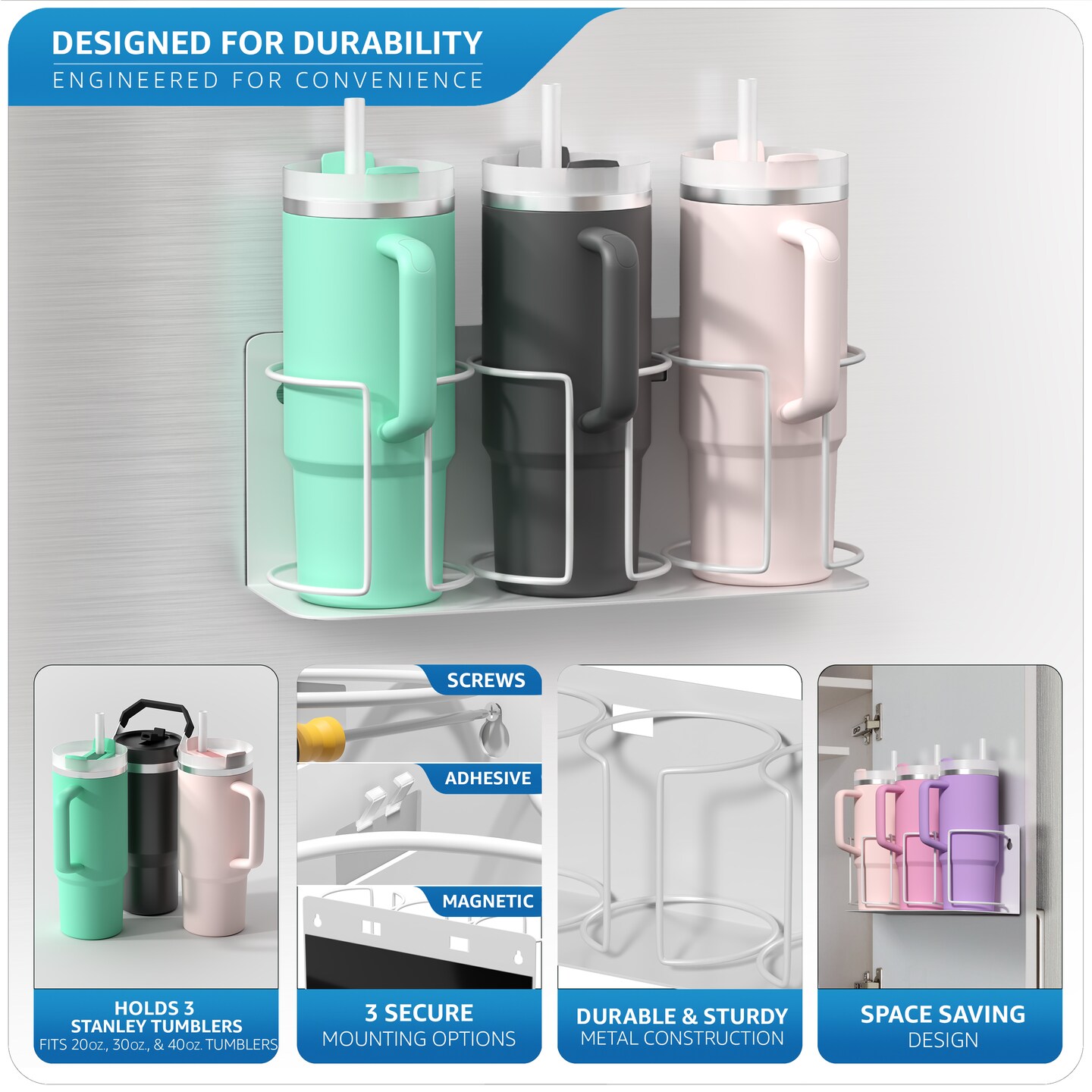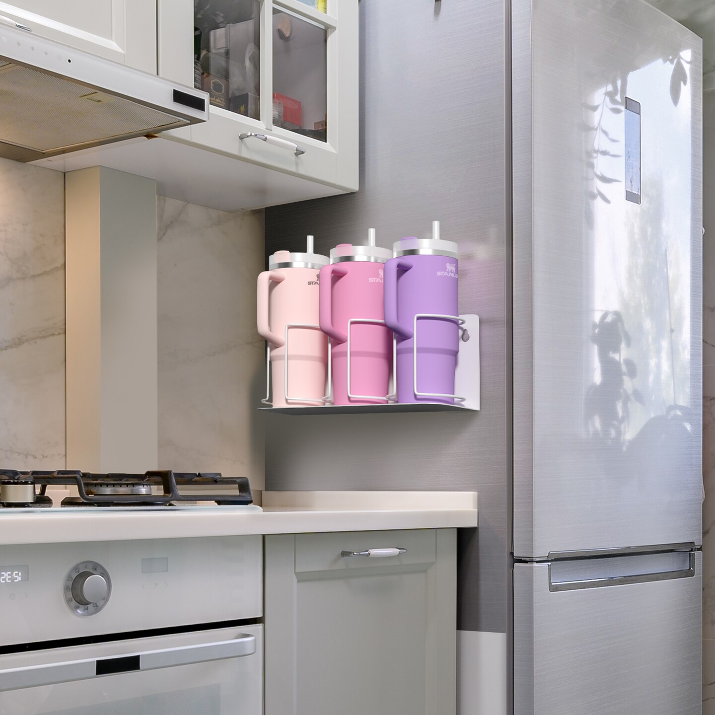 Sorbus Magnetic Stanley Cup Holder for 3 Cups – Versatile Water Bottle Organizer for Fridge, Oven, or Wall – Adjustable Mount with Adhesive Tape or Screws – Tumbler & Travel Mug Storage Rack