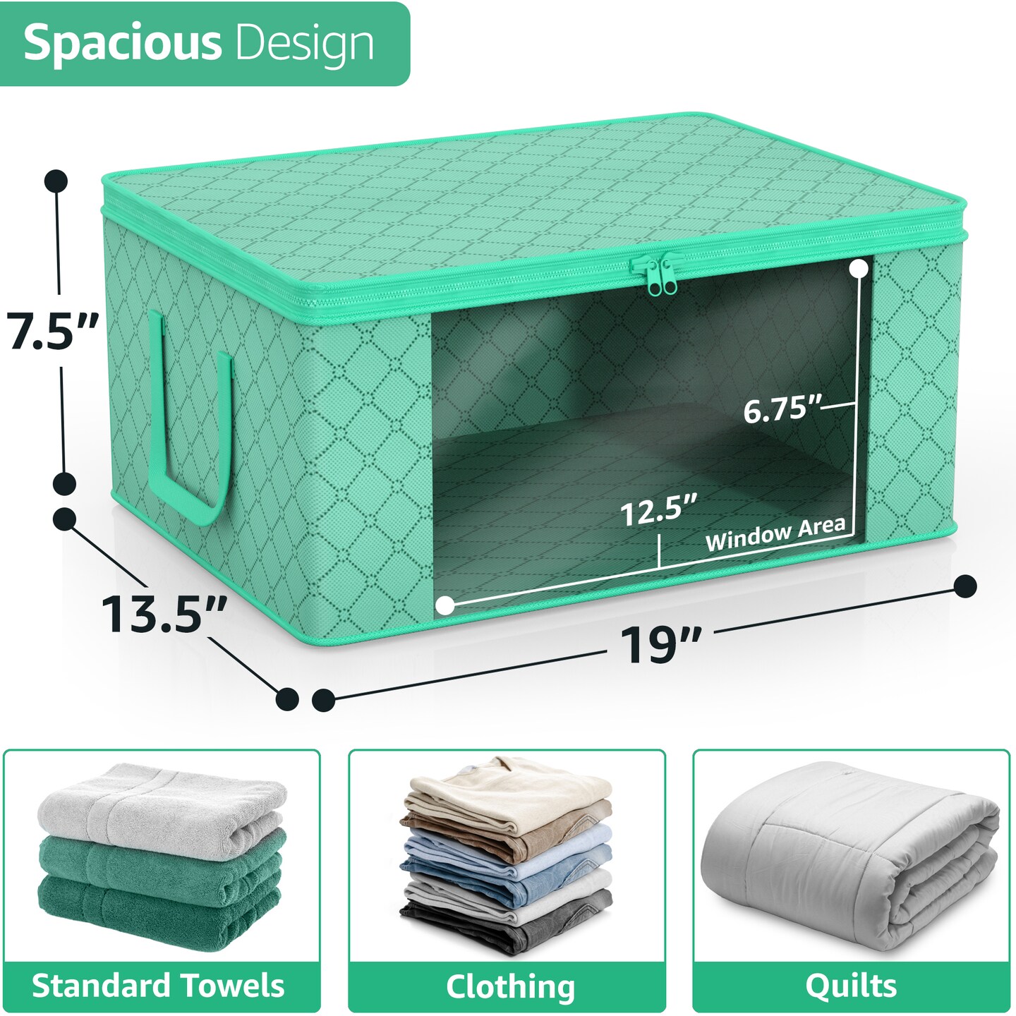 Sorbus Medium Clothes Storage Bags 6 Pack - Foldable Blanket Organizer Bins with Window, Lids, and Handles
