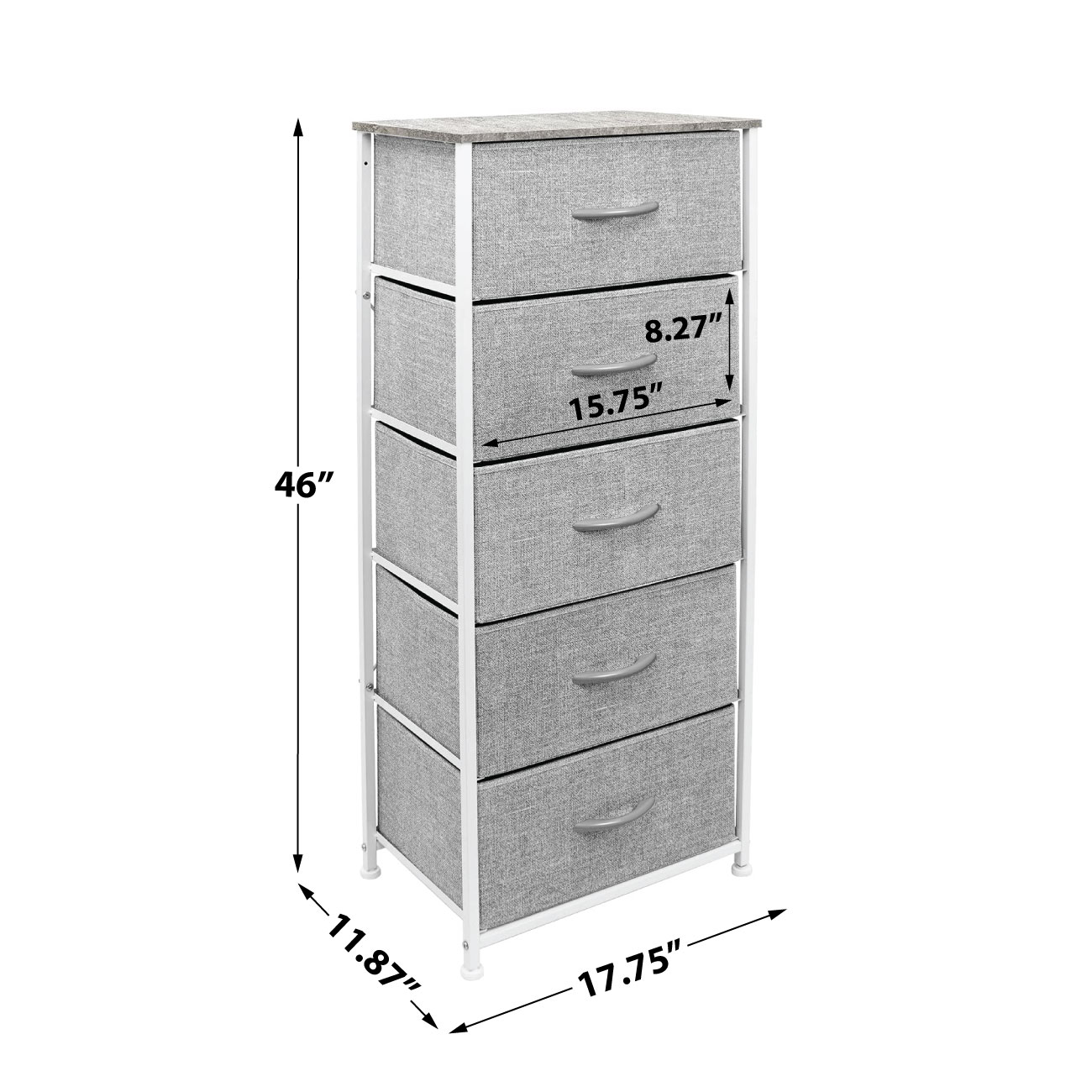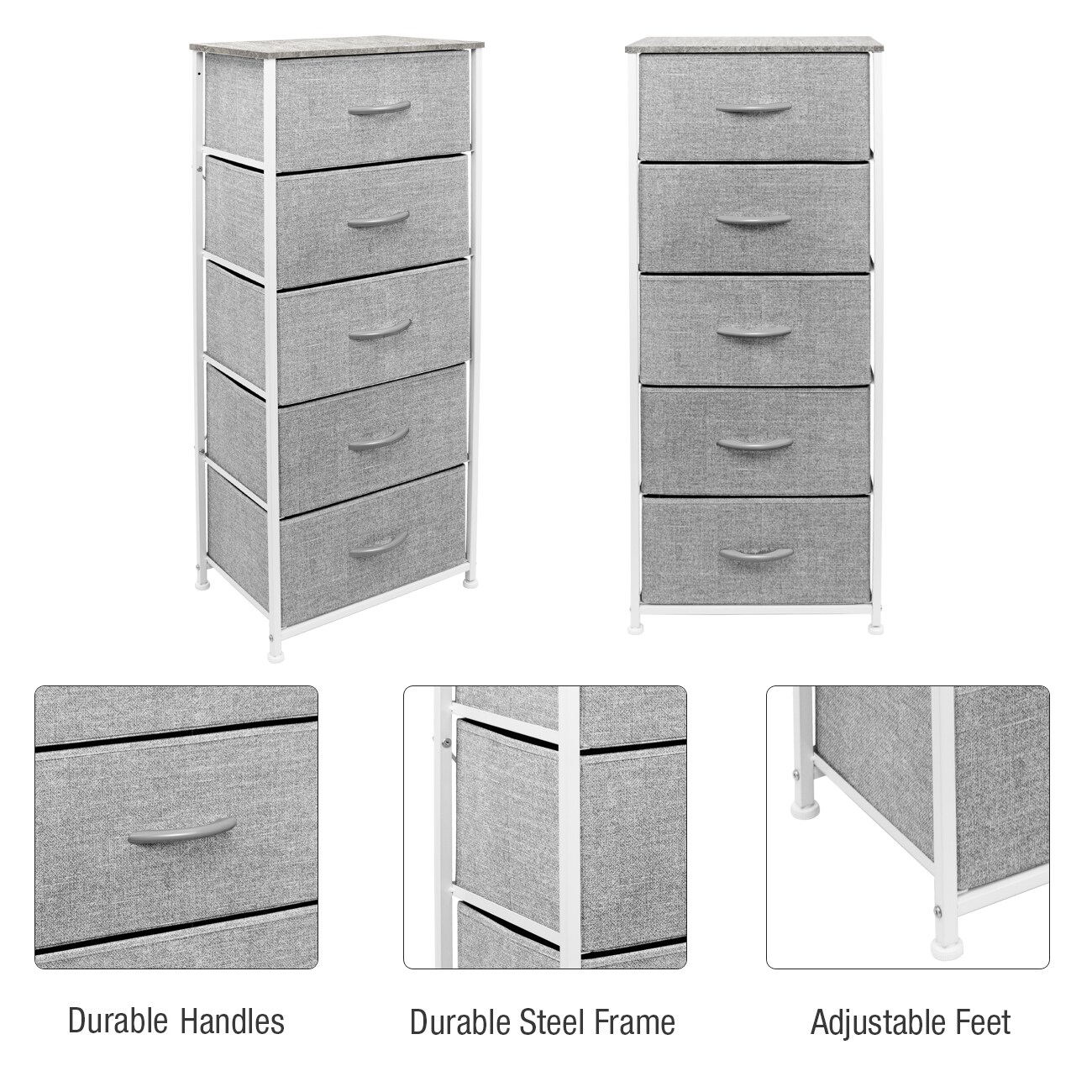 Sorbus Narrow 5 Drawers Nightstand with Steel Frame, Wood Top, Easy Pull Fabric Bins for Home, Bedroom, Office & Dorm