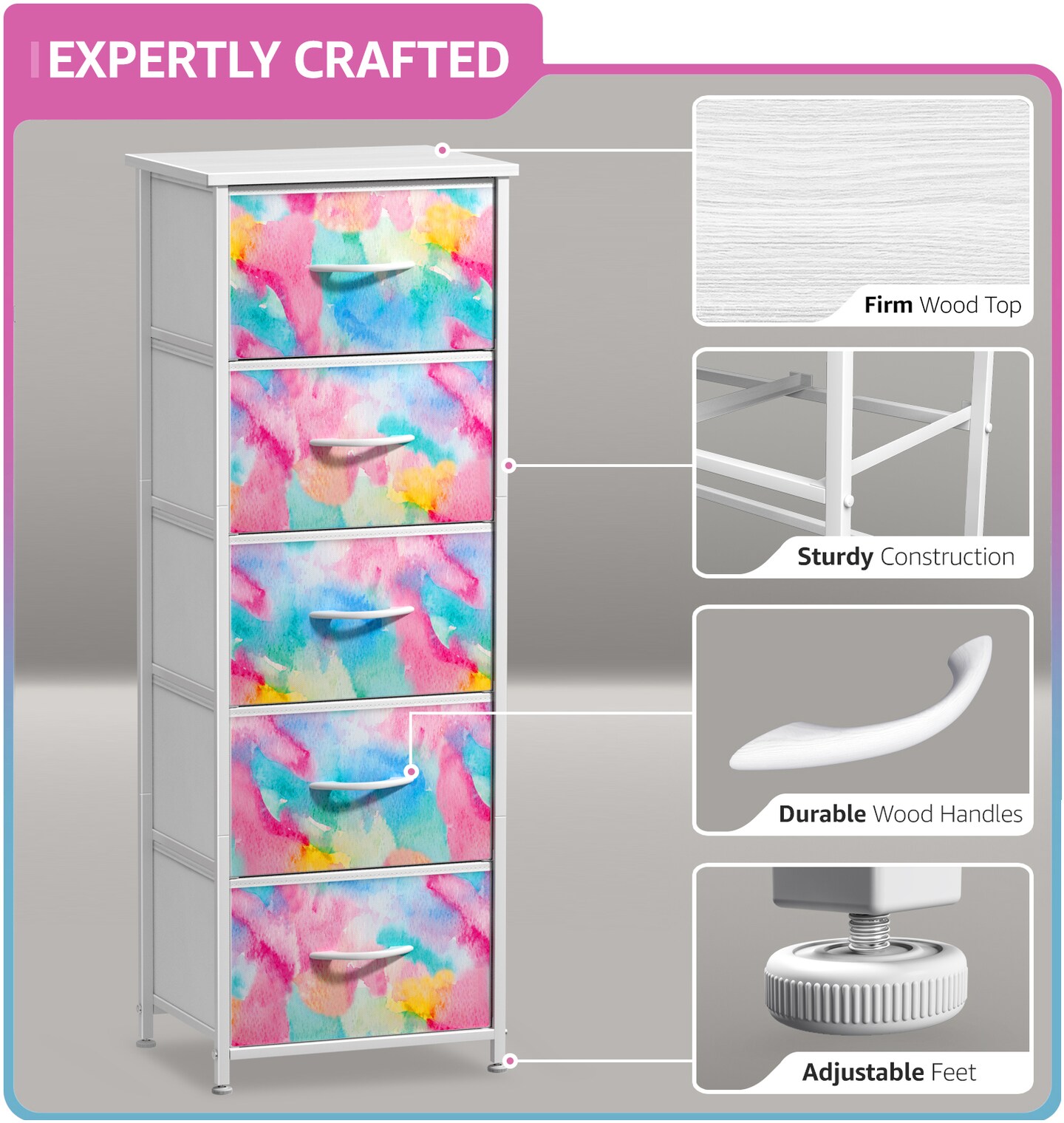 Sorbus Narrow 5 Drawers Nightstand with Steel Frame, Wood Top, Easy Pull Fabric Bins for Home, Bedroom, Office & Dorm