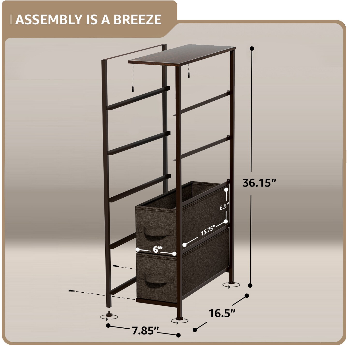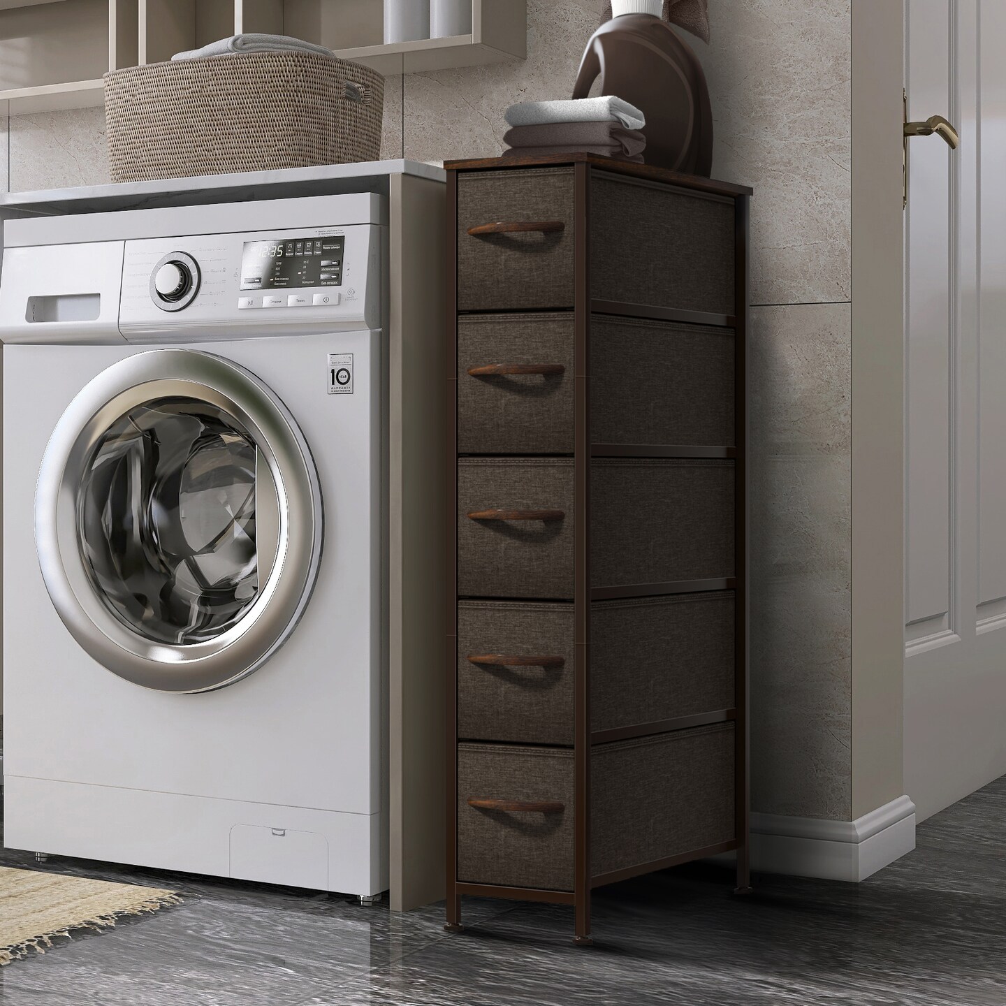 Sorbus Narrow Dresser with 5 Drawers - Steel Frame, Wood Top & Easy Pull Fabric Bins