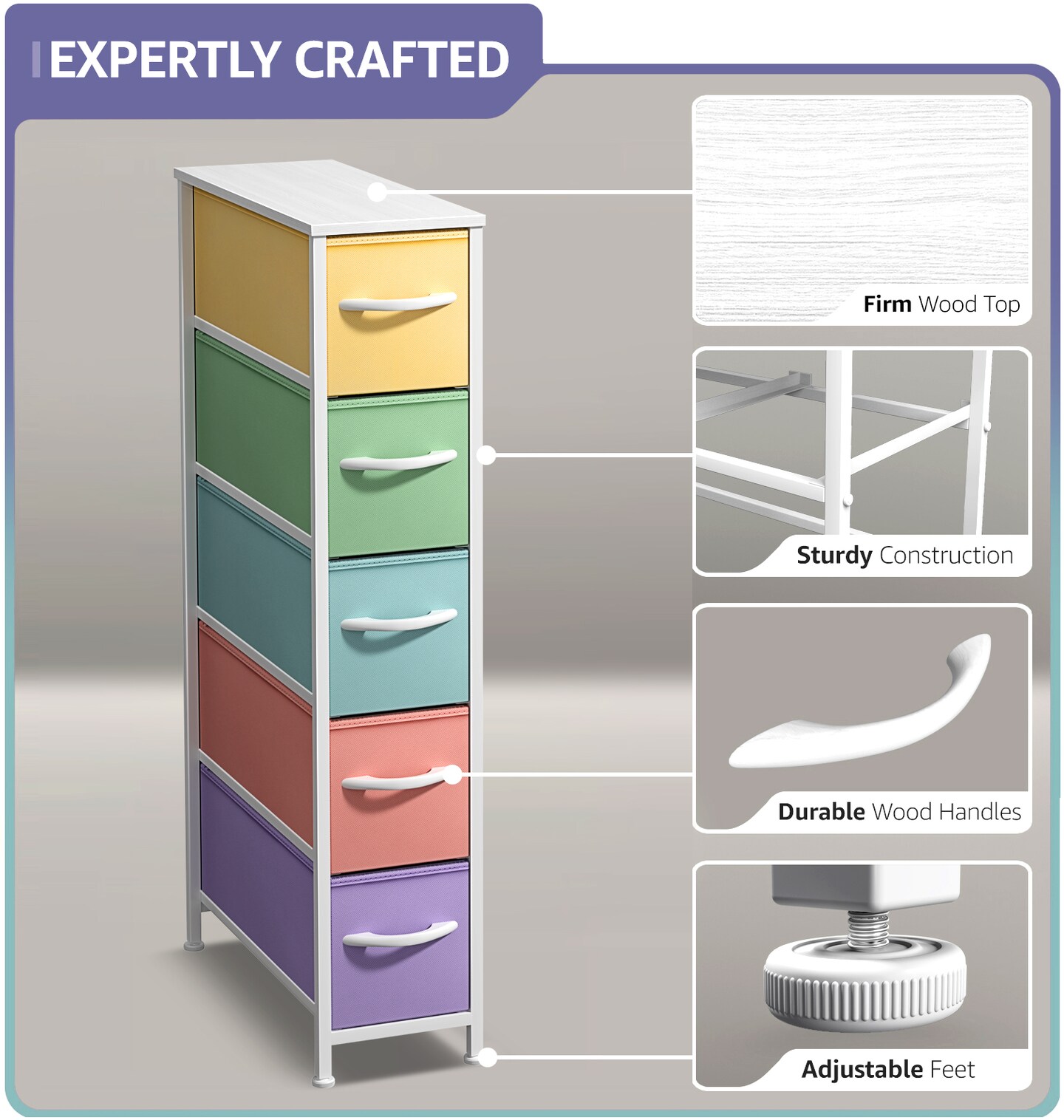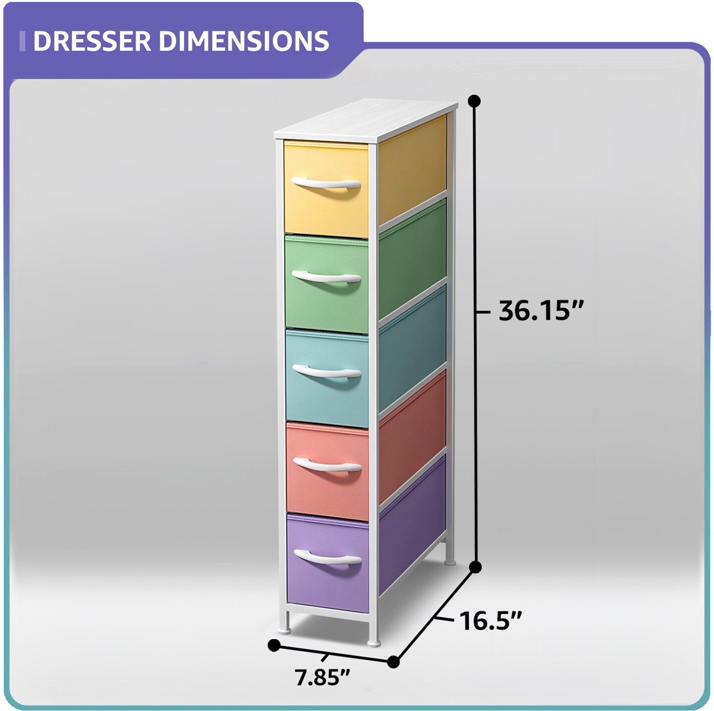 Sorbus Narrow Dresser with 5 Drawers - Steel Frame, Wood Top & Easy Pull Fabric Bins