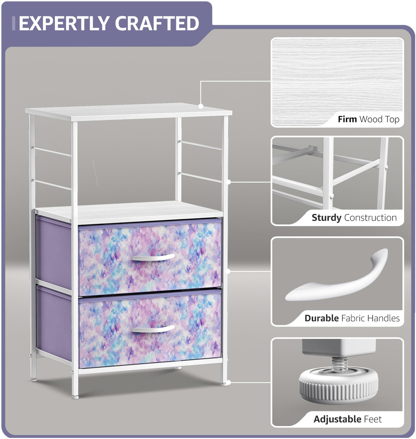 Sorbus Nightstand 2-Drawer Shelf Storage - Bedside Furniture & End Table Chest Dresser with Steel Frame, Wood Top & Easy Pull Fabric Bins for Home, Bedroom, Closets, Bathroom, Office & College Dorm