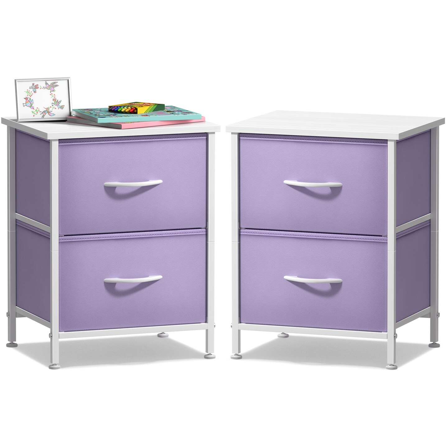 Sorbus Nightstand with 2 Drawers - Steel Frame, Wood Top & Easy Pull Fabric Bins - Great for Home, Bedroom, Office & College Dorm (2 Pack)
