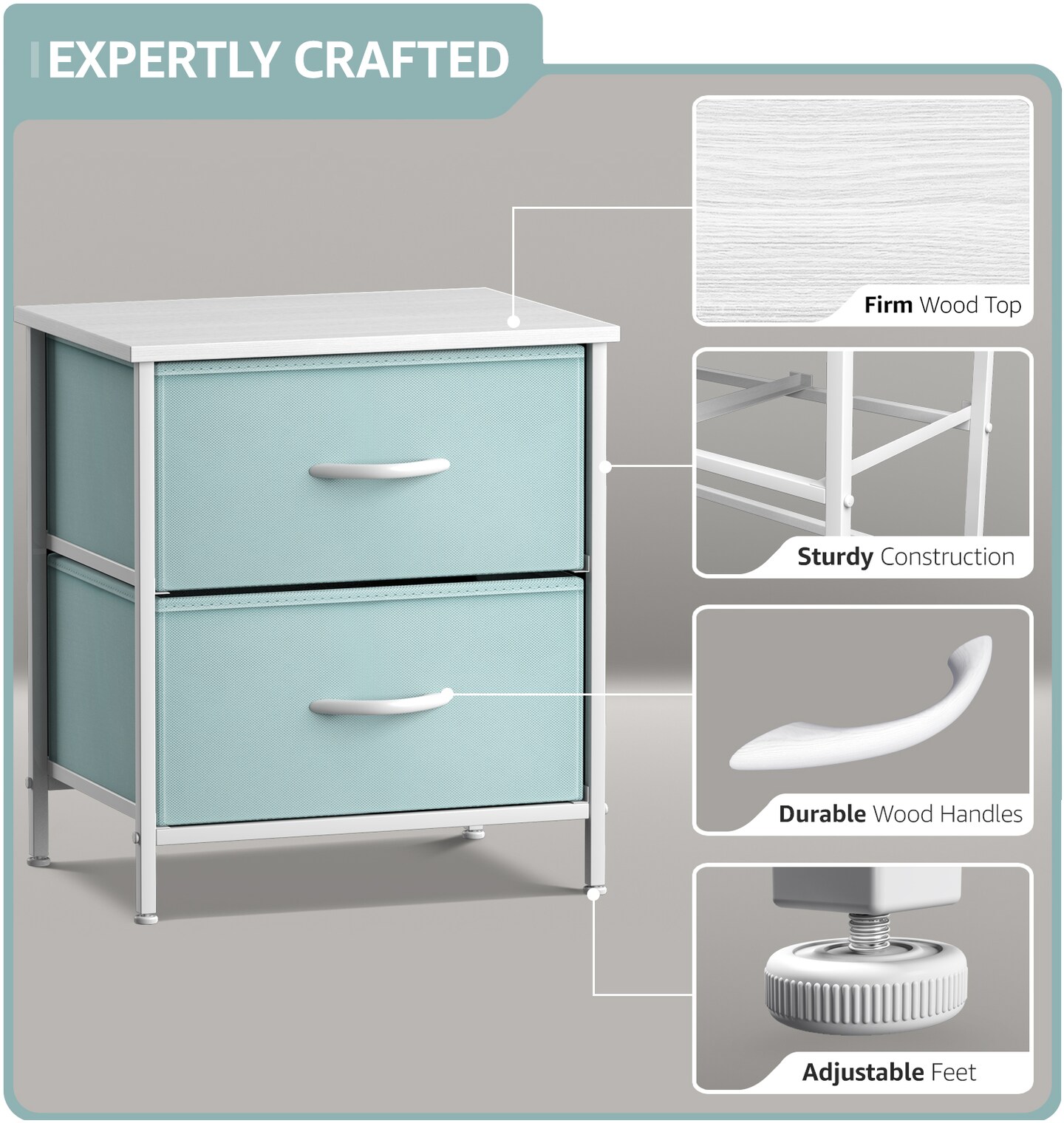 Sorbus Nightstand with 2 Drawers - Steel Frame, Wood Top & Easy Pull Fabric Bins - Great for Home, Bedroom, Office & College Dorm