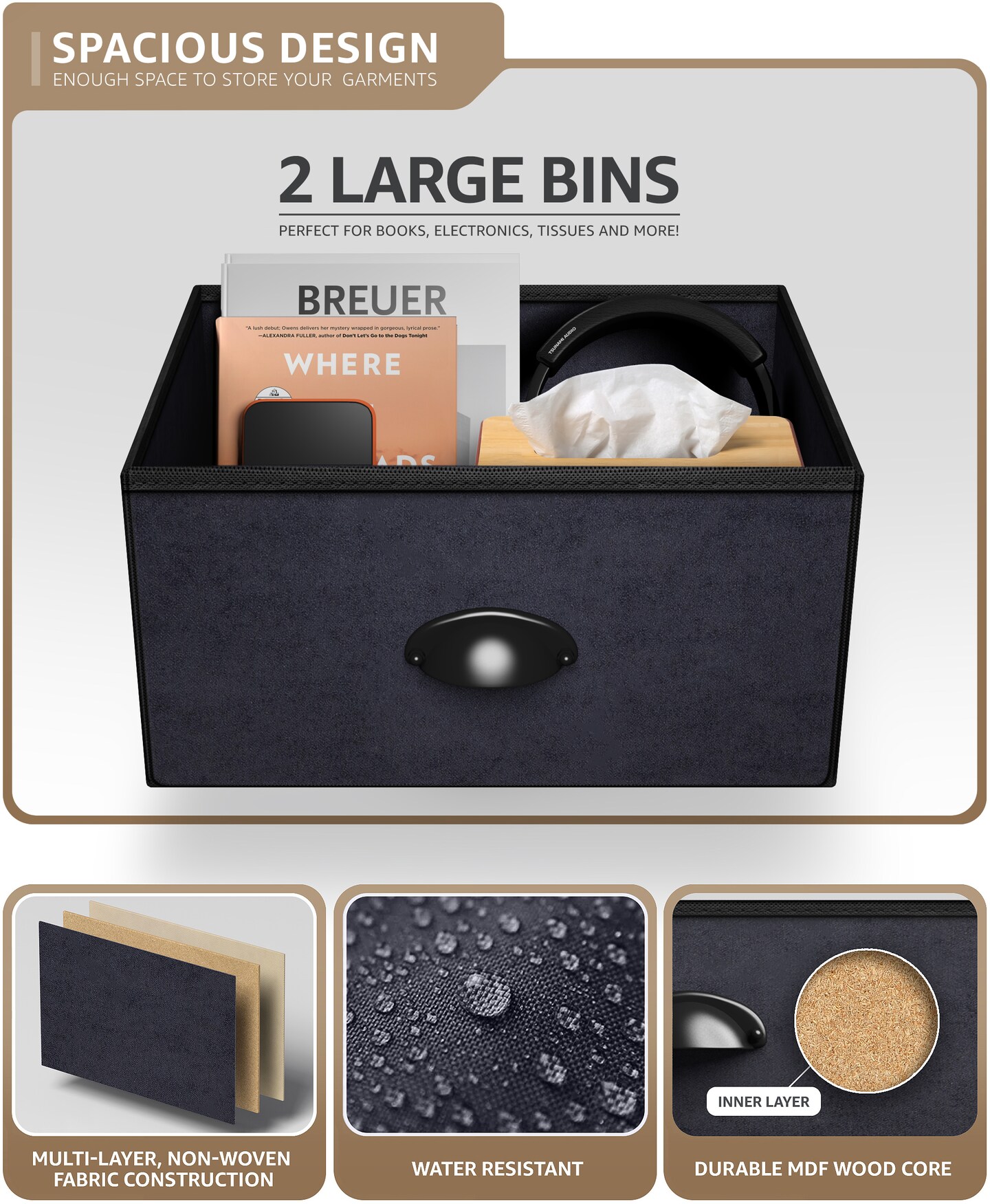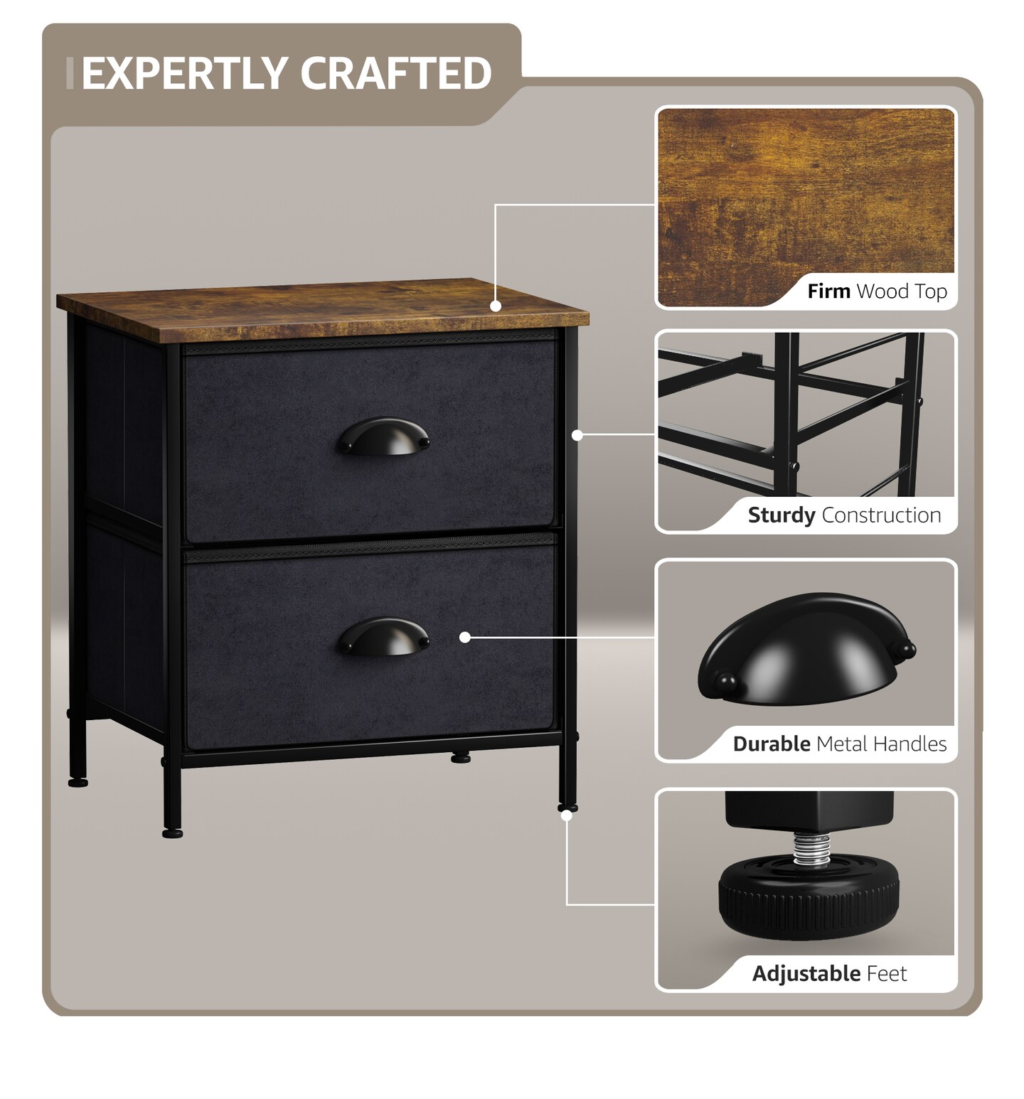 Sorbus Nightstand with 2 Drawers - Steel Frame, Wood Top & Easy Pull Fabric Bins - Great for Home, Bedroom, Office & College Dorm