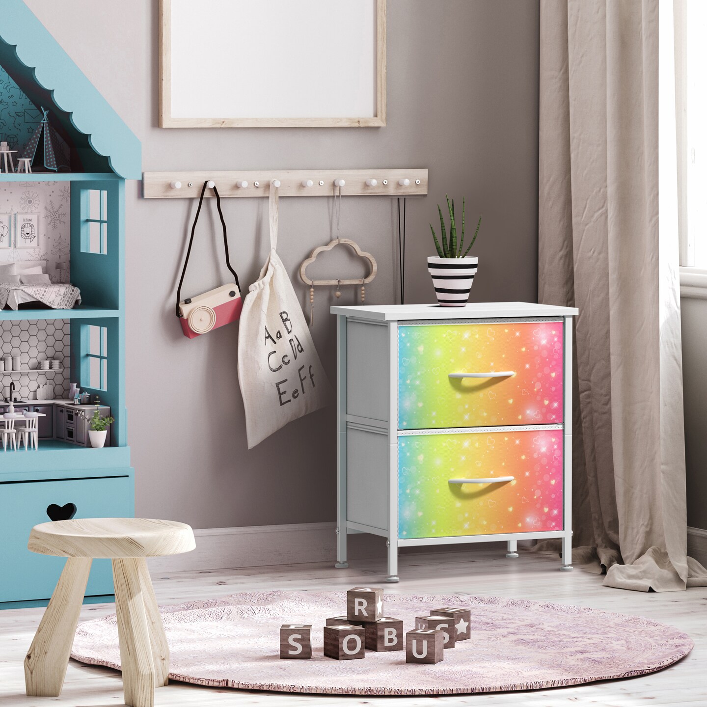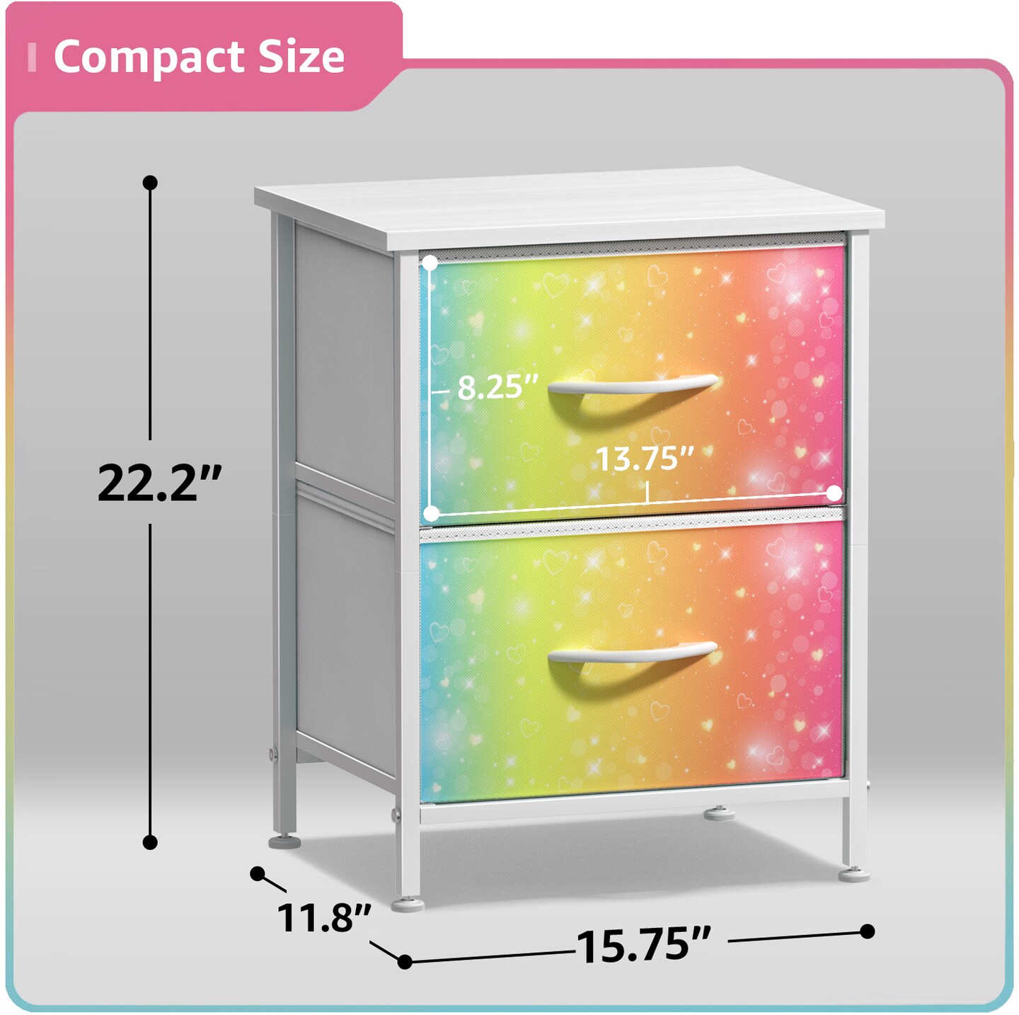 Sorbus Nightstand with 2 Drawers - Steel Frame, Wood Top & Easy Pull Fabric Bins - Great for Home, Bedroom, Office & College Dorm