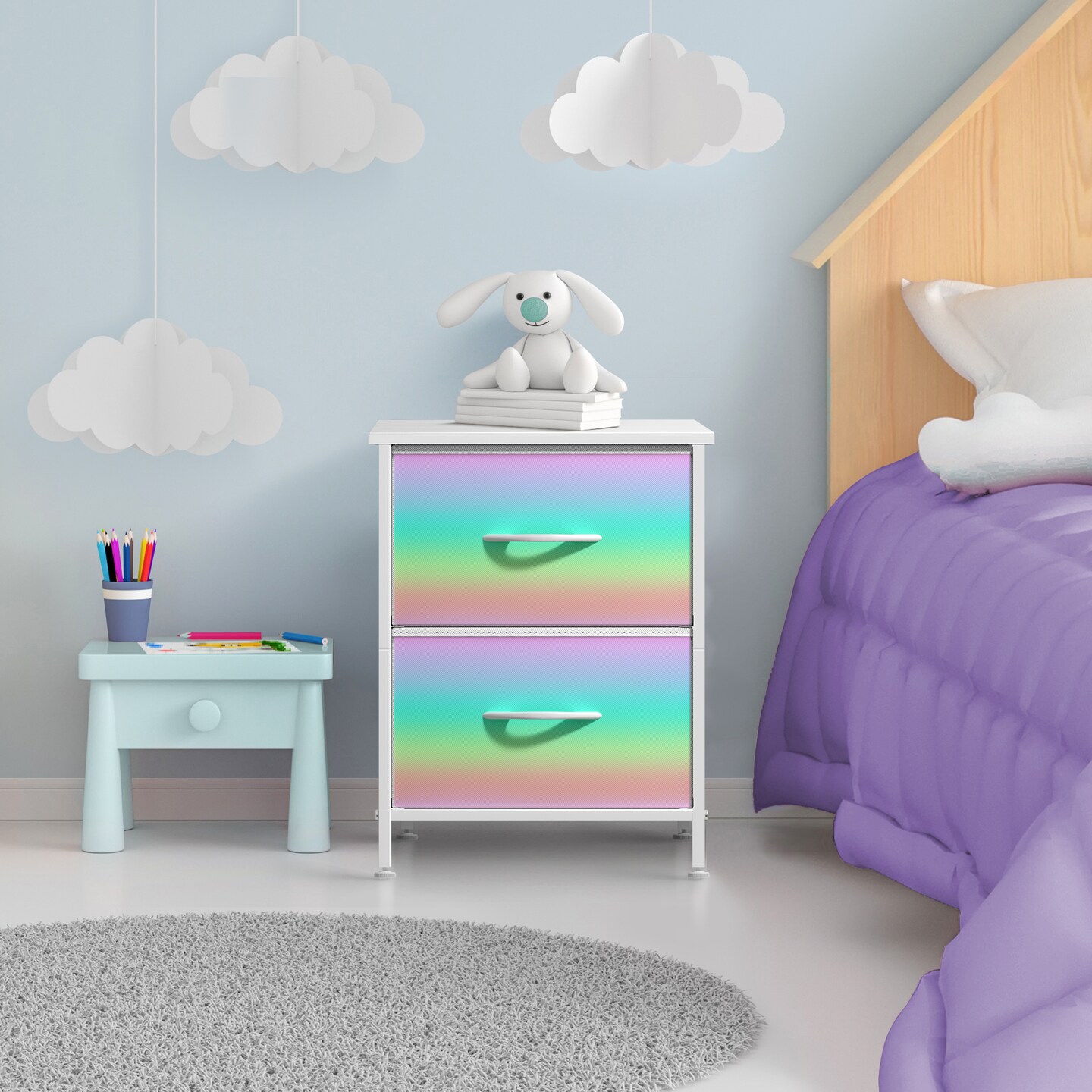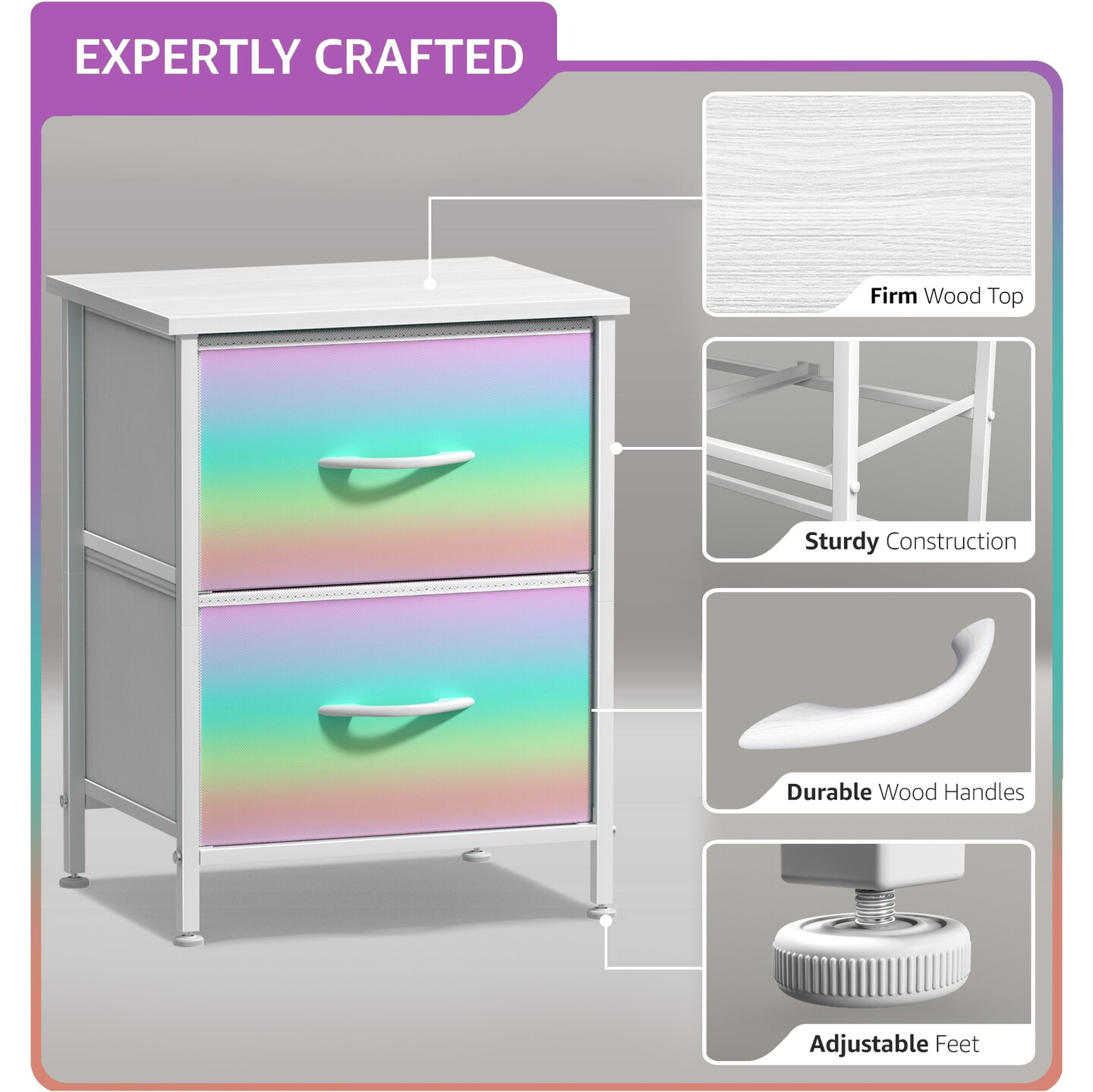 Sorbus Nightstand with 2 Drawers - Steel Frame, Wood Top & Easy Pull Fabric Bins - Great for Home, Bedroom, Office & College Dorm
