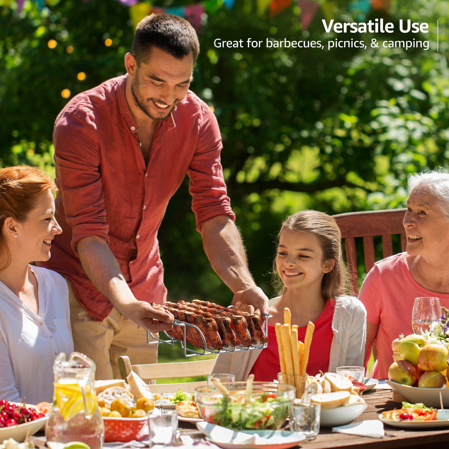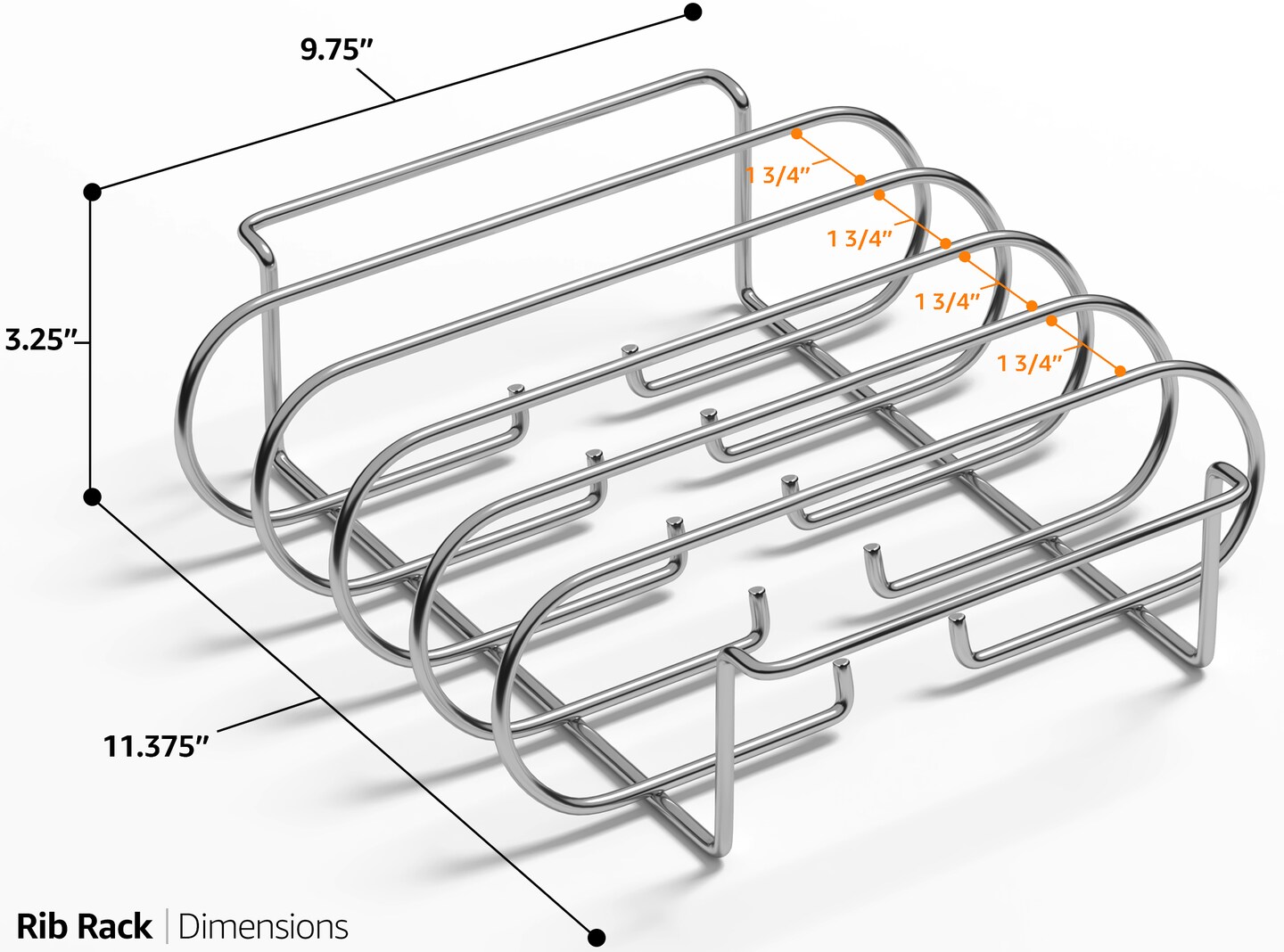 Sorbus Non-Stick Rib Rack - Porcelain Coated Steel Roasting Stand - Holds 4 Rib Racks for Grilling & Barbecuing (Silver)