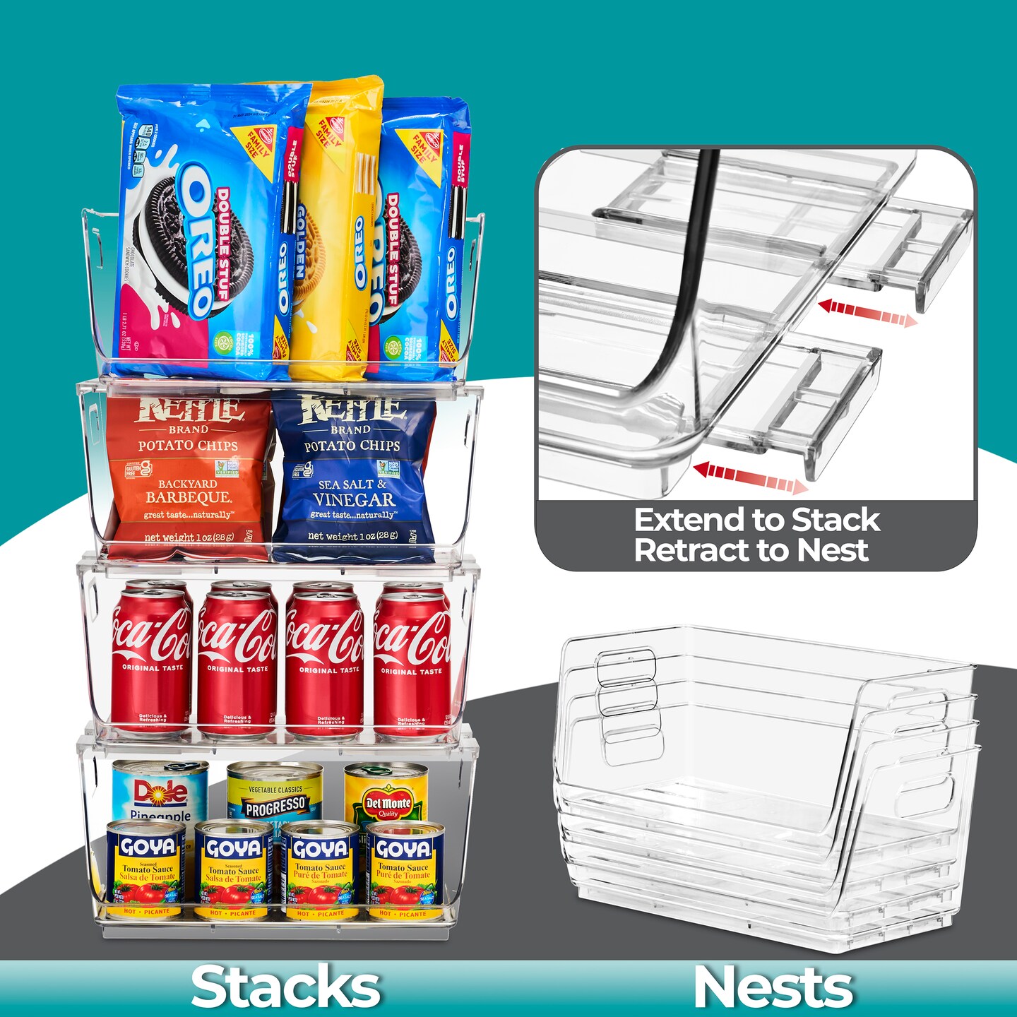 Sorbus Stackable Storage Bins 4 Pack- Open Front Clear Storage Bins for Pantry and Kitchen Organization