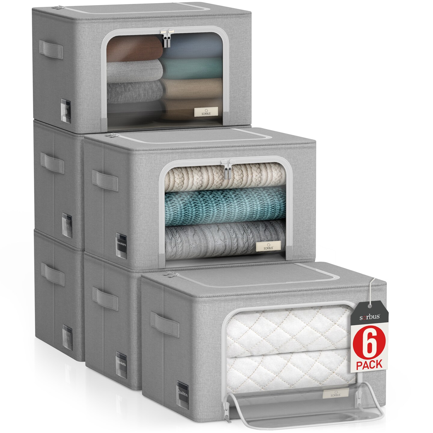 Sorbus Storage Bins 6 Pack- Foldable Stackable Container Organizer Set with Large Window & Carry Handles