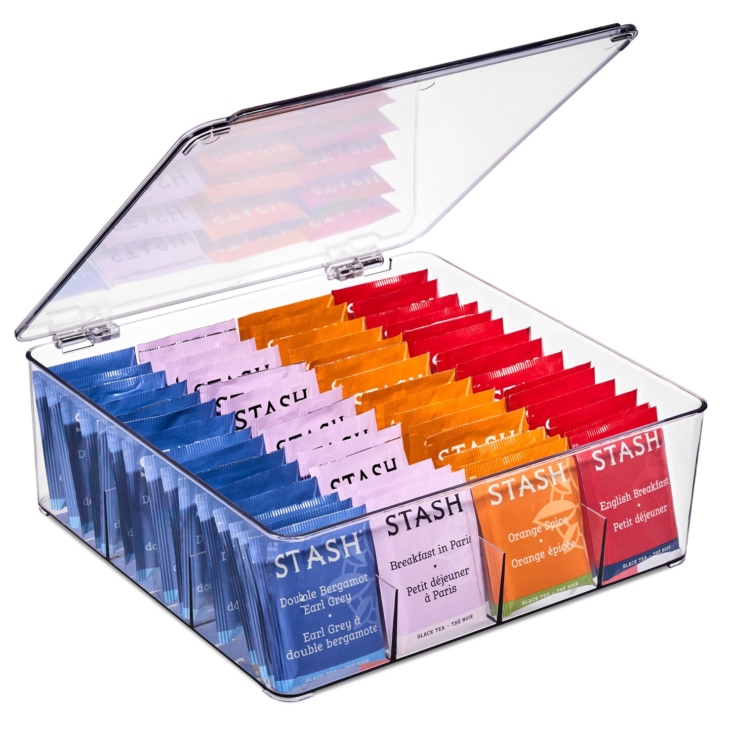 Sorbus Tea Bag Organizer, Stackable Tea Bag Storage Organizer with 12 Compartments and Hinged Lid, Plastic Tea Bag Holder for Kitchen Organizers