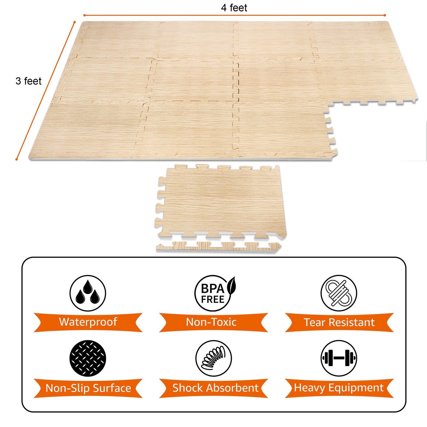 Sorbus Wood Grain Floor Mats Foam (16 Tiles,16 Sq ft - Light Pine)