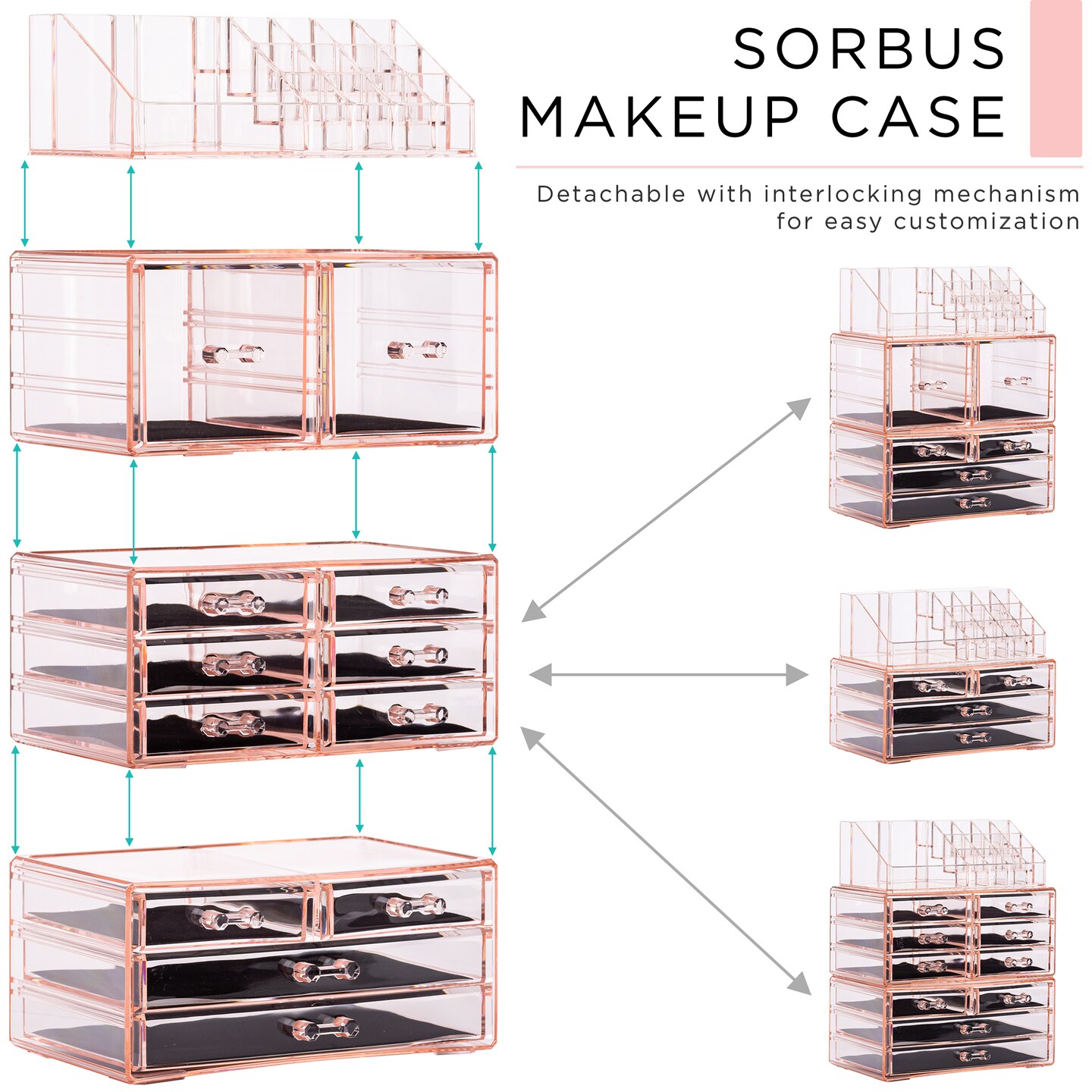 Sorbus X-Large Acrylic Makeup and Jewelry Organizer Case - 4 Piece Set (12 Drawers)