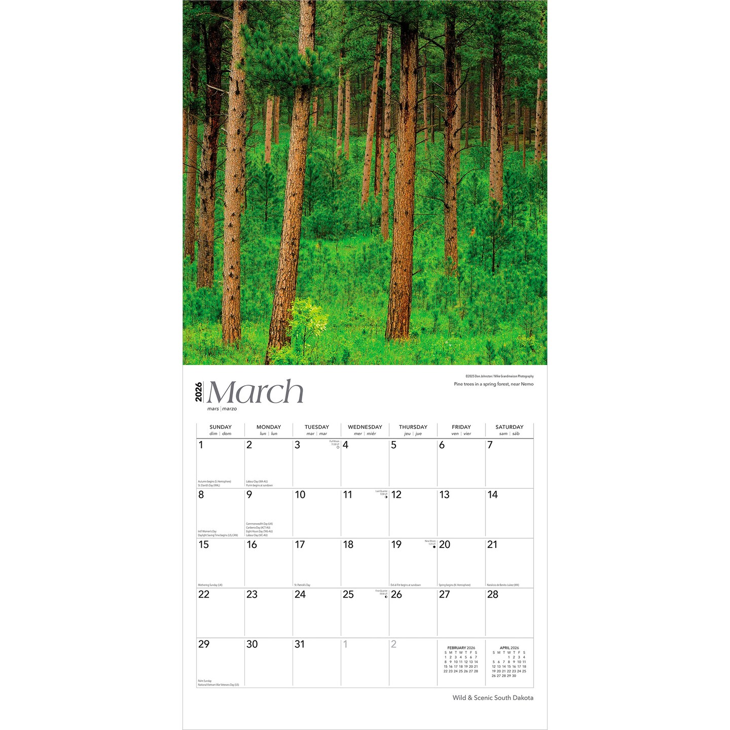South Dakota Wild & Scenic | 2026 12 x 24 Inch (Hanging) Monthly Square Wall Calendar | Plastic-Free