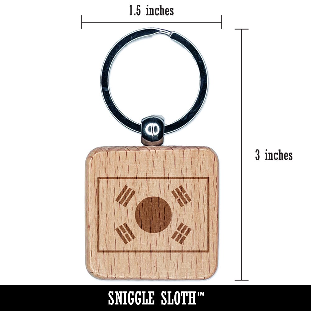 South Korea Flag Engraved Wood Square Keychain Tag Charm