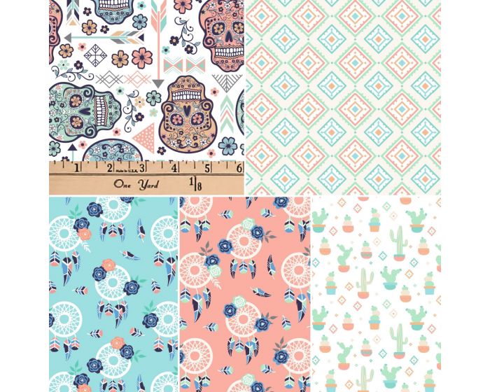 Southwest Skulls 5-piece Cotton Fabric Fat Quarter Bundle | Sewing | Crafting | Quilting