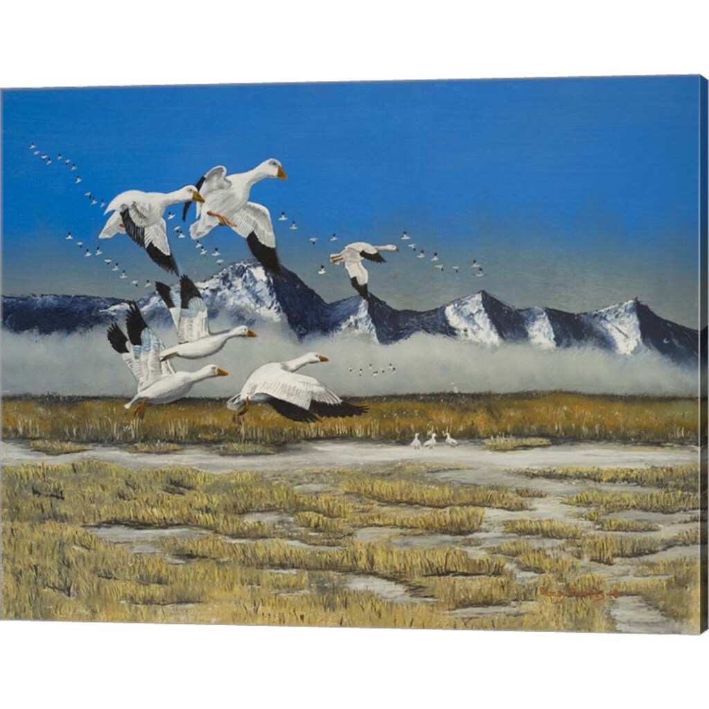 Sow Geese Spring Flight by Randy M Jones 20" x 16" Canvas Wall Art