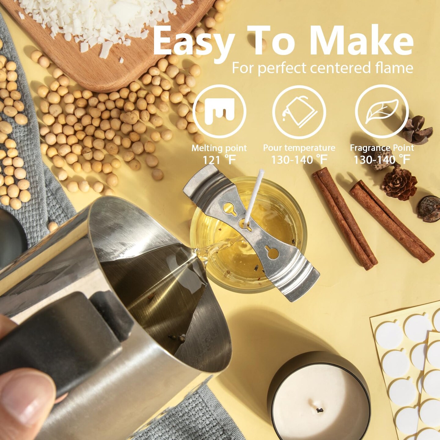Soy Candle Wax for Candle Making 5 lbs Bag, Premium Natural Soy Wax Flakes, No additives and Pure, 100 Cotton Candle Wicks, 100 Wick Stickers, & 2 Centering Devices