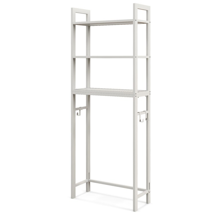 Space Saving Over The Toilet Storage Rack with 3 Tier Metal Shelves and Hooks for Bathroom Organizer