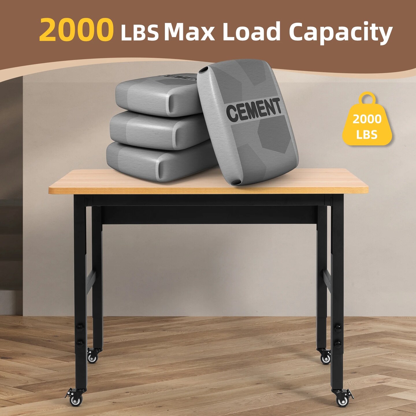 spanspace 48" Adjustable Heavy-Duty Workbench, Hardwood Top Worktable with Locking Universal Wheels & Metal Frame,Workshop Garage Table