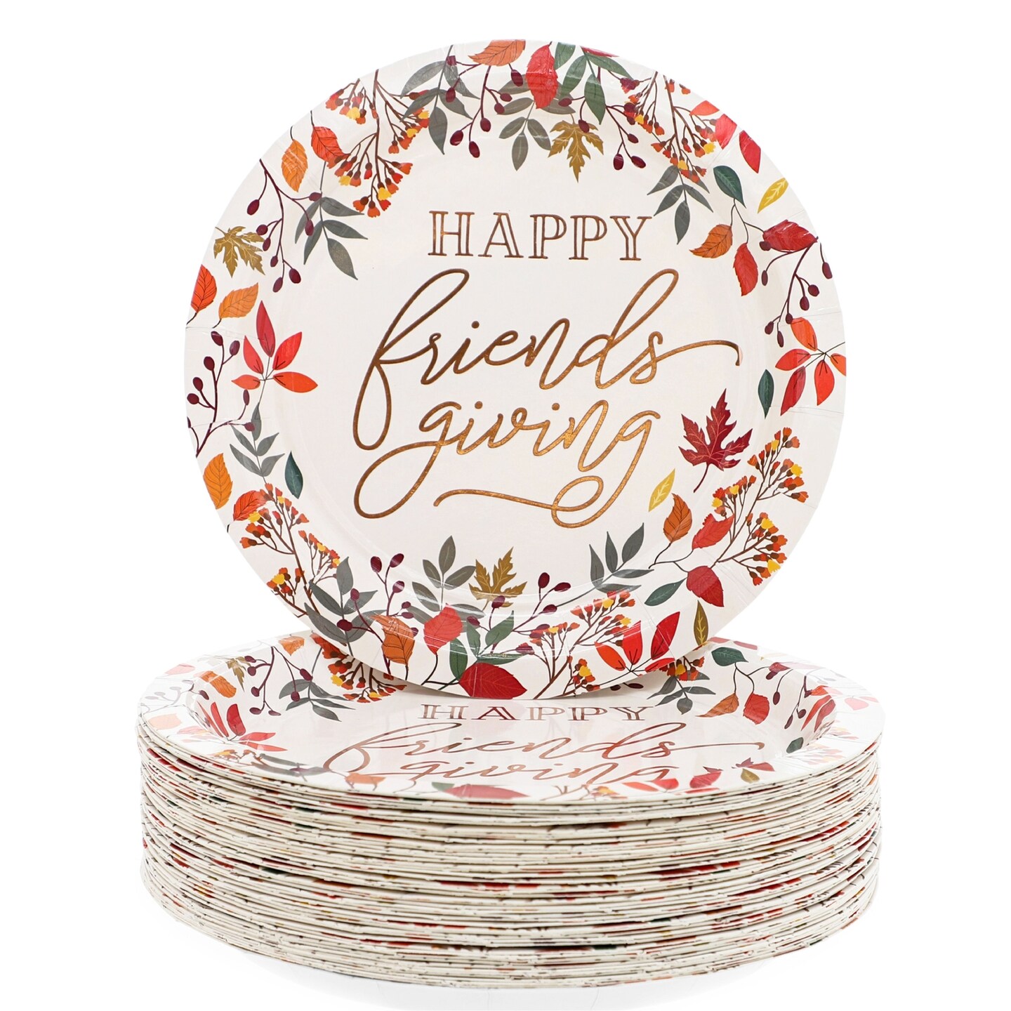 Sparkle and Bash 48 Pack Friendsgiving Plates, 7-Inch Paper Plates with Fall Leaves and Rose Gold Foil, Thanksgiving Party Decor Supplies