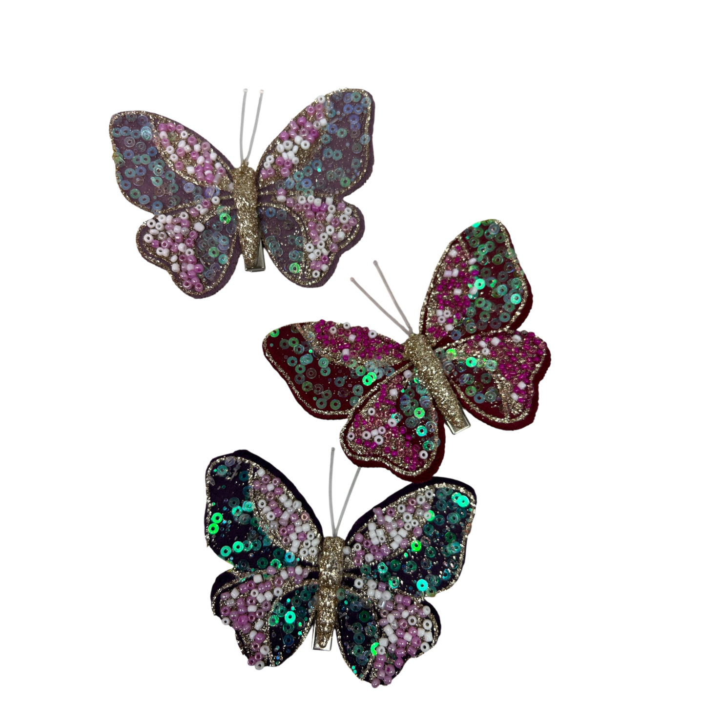Sparkling Butterfly Clip-On Ornaments - Set of Three