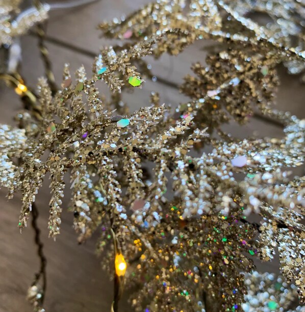 Sparkling Gold Fern Fairy Lights – 20 LED Iridescent Garland, Battery Powered