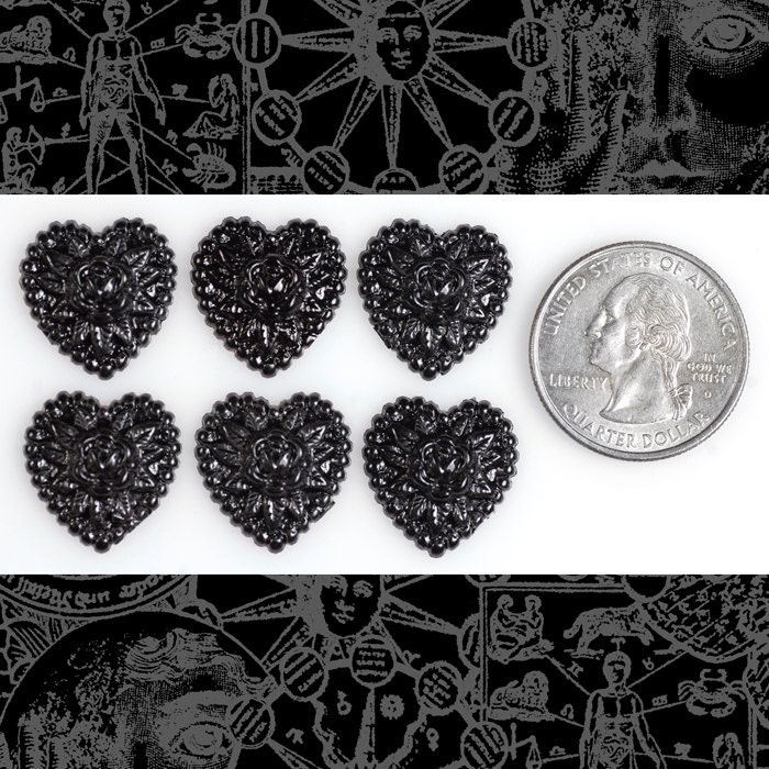 Sparkly Black Heart Cabochons - Set of Six - Cab27