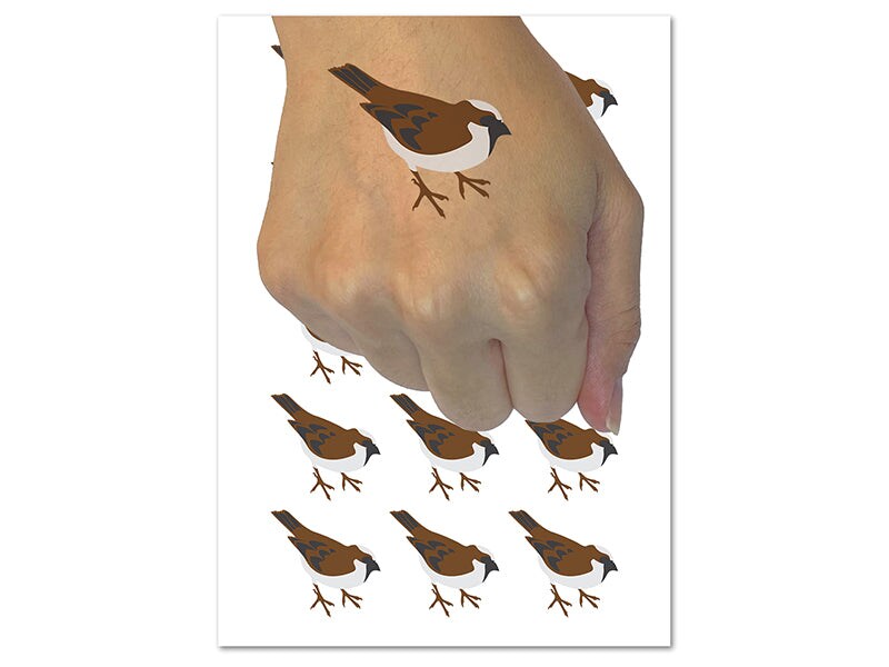 Sparrow Bird Solid Temporary Tattoo Water Resistant Fake Body Art Set Collection (1 Sheet)