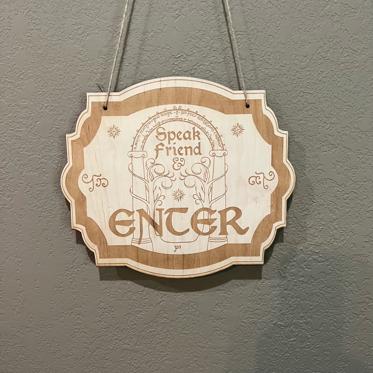 Speak Friend and Enter - Raw Wood Door Sign 6x9